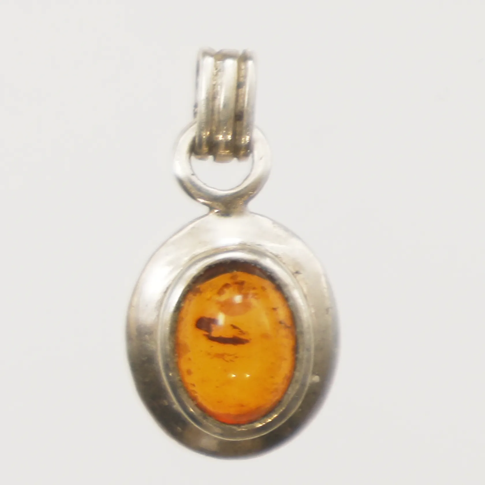 Hänge med bärnsten, längd 19mm inkl ögla, bredd 10mm, 925/1000 Vikt: 1,4 g.