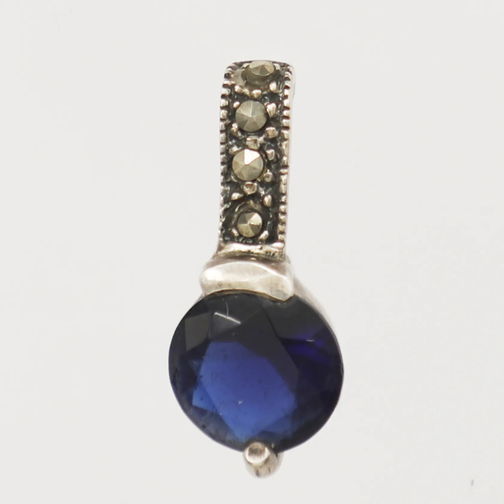 Hänge med mörkblå sten samt markasiter, längd 18,6mm inkl ögla, bredd 7,6mm, 925/1000 silver Vikt: 1,6 g.