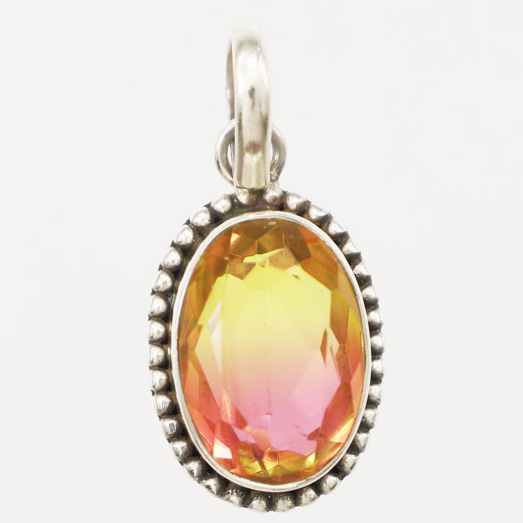 Hänge med gulrosa glassten, längd 35,7mm inkl ögla, bredd 16,4mm, silver Vikt: 6,9 g.