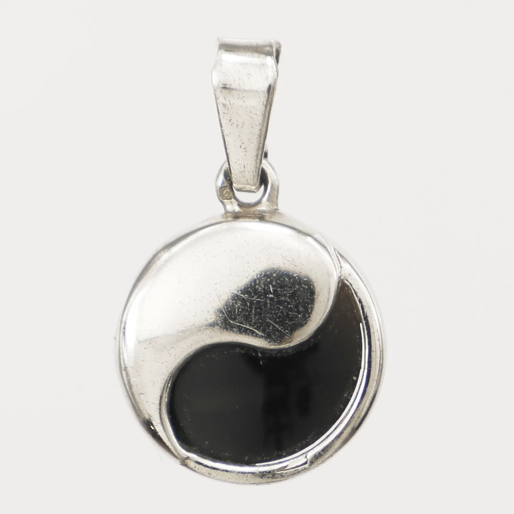 Hänge Yin Yang, längd 23mm inkl ögla, bredd 14mm, 835/1000 silver Vikt: 1,9 g.