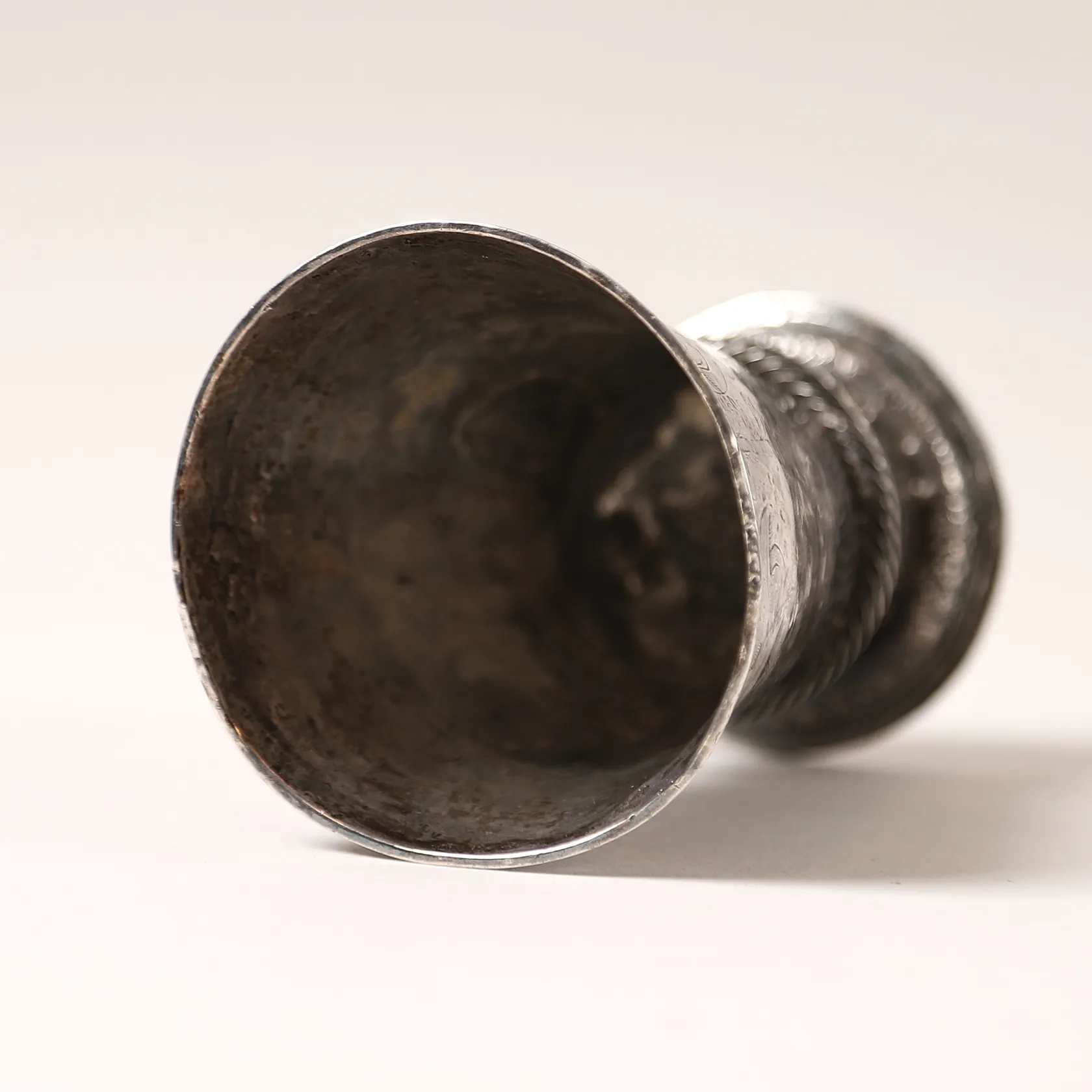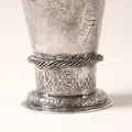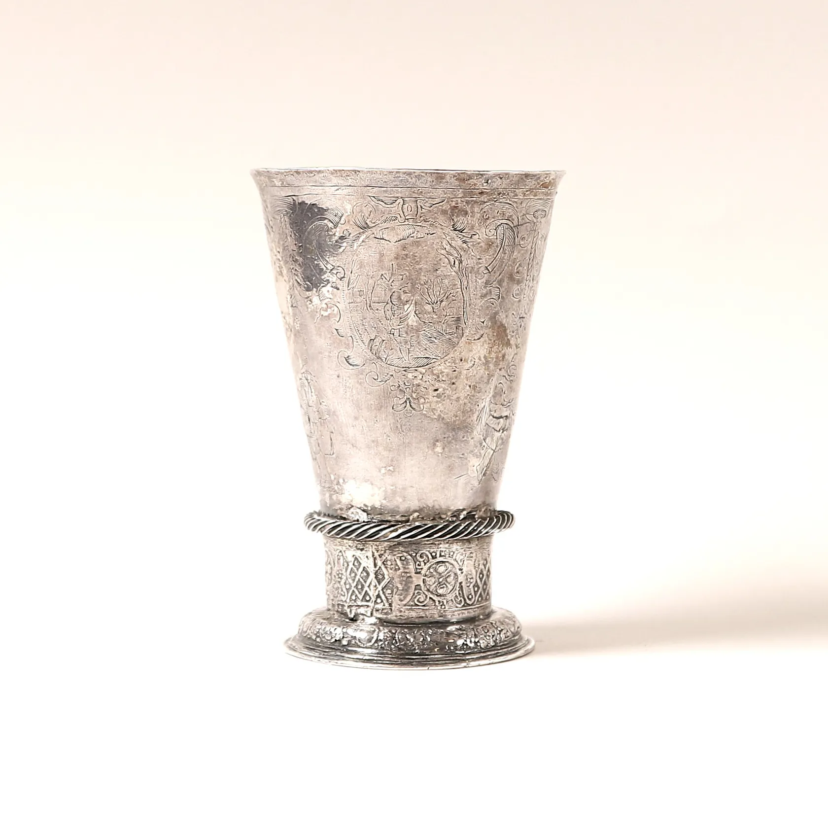 Bägare, så kallad "Dobbelbeaker", sannolikt Groningen 1620-1640-tal, höjd 11cm, värderingsutlåtande från Bukowskis och Stockholms Auktionsverk, åldersbetingat slitage, lagningar, silver. Vikt: 107,8 g.