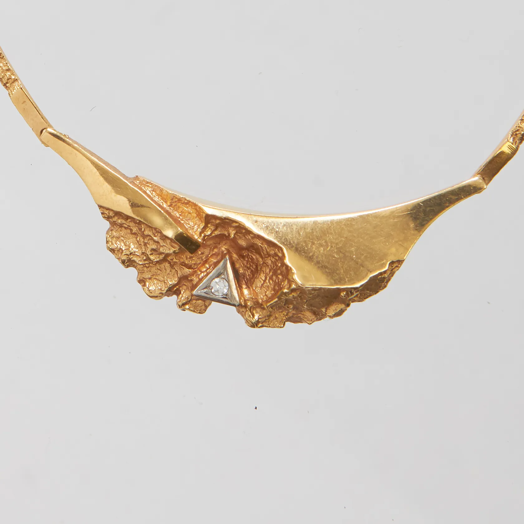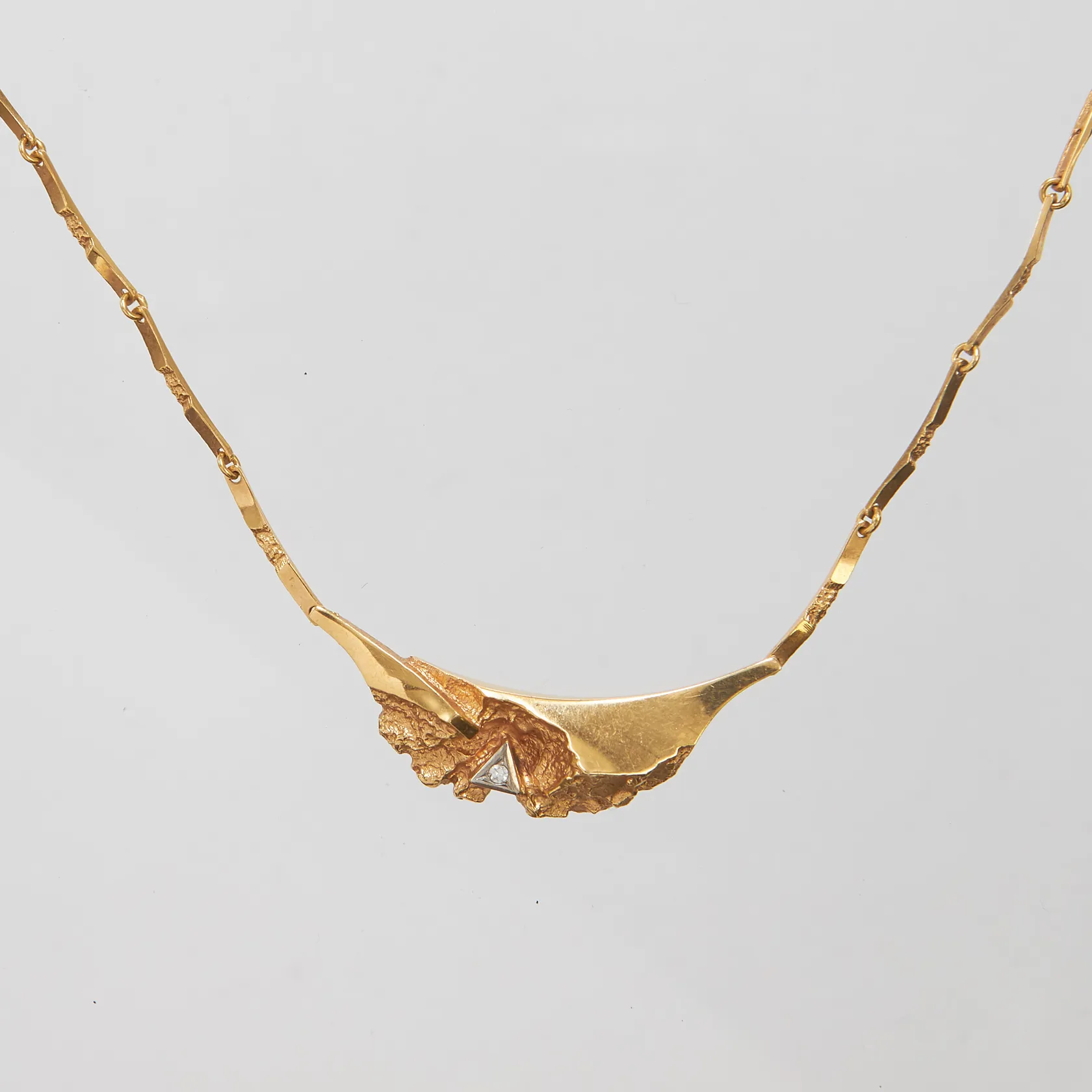 Collier med diamant 1 x ca 0,02ct längd ca 42,5cm, bredd 2-11mm, 18K Vikt: 10 g.