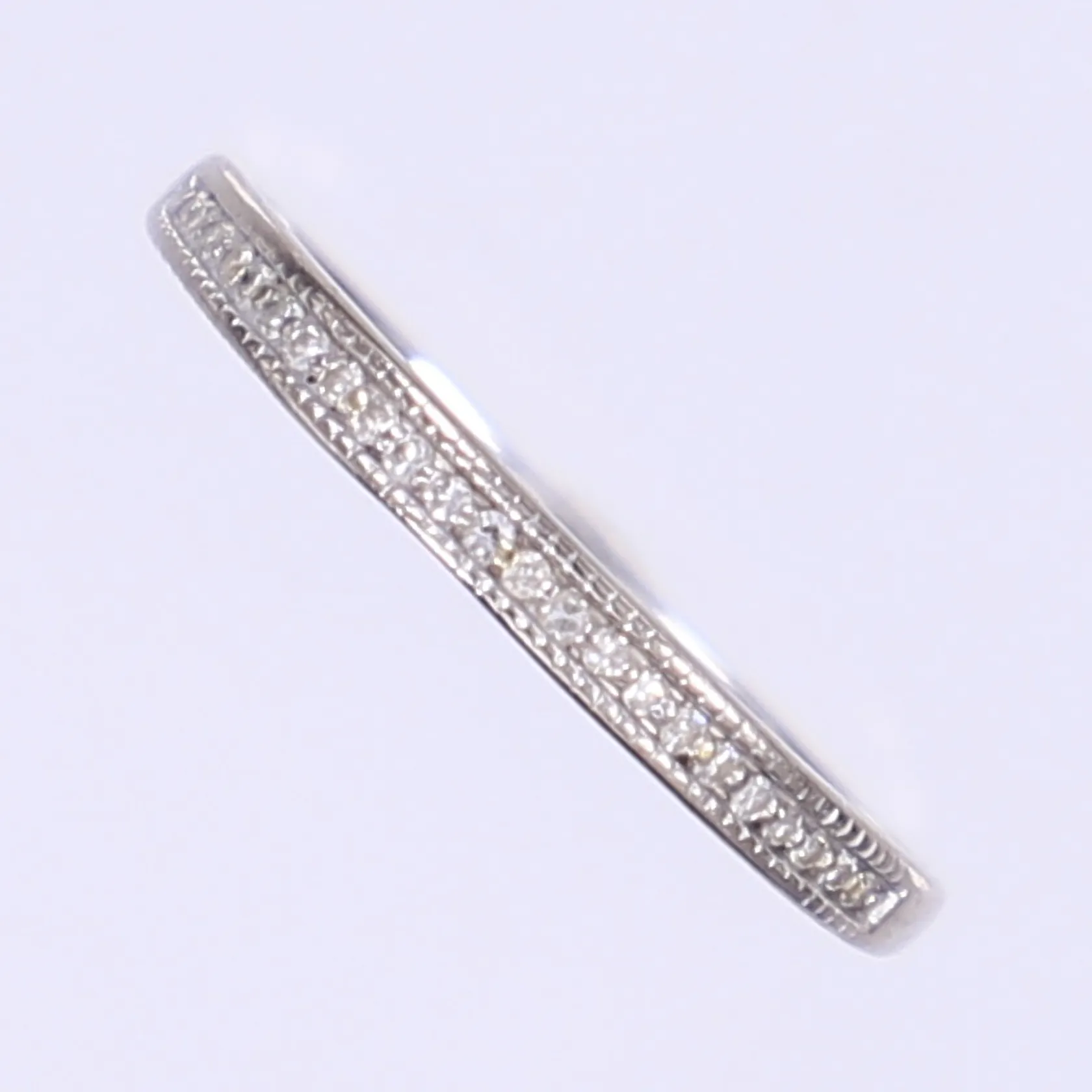 Ring med diamanter totalt 23xca 0,005ct stl 16¼, bredd 1-2mm, vitguld, 18K Vikt: 1,3 g.