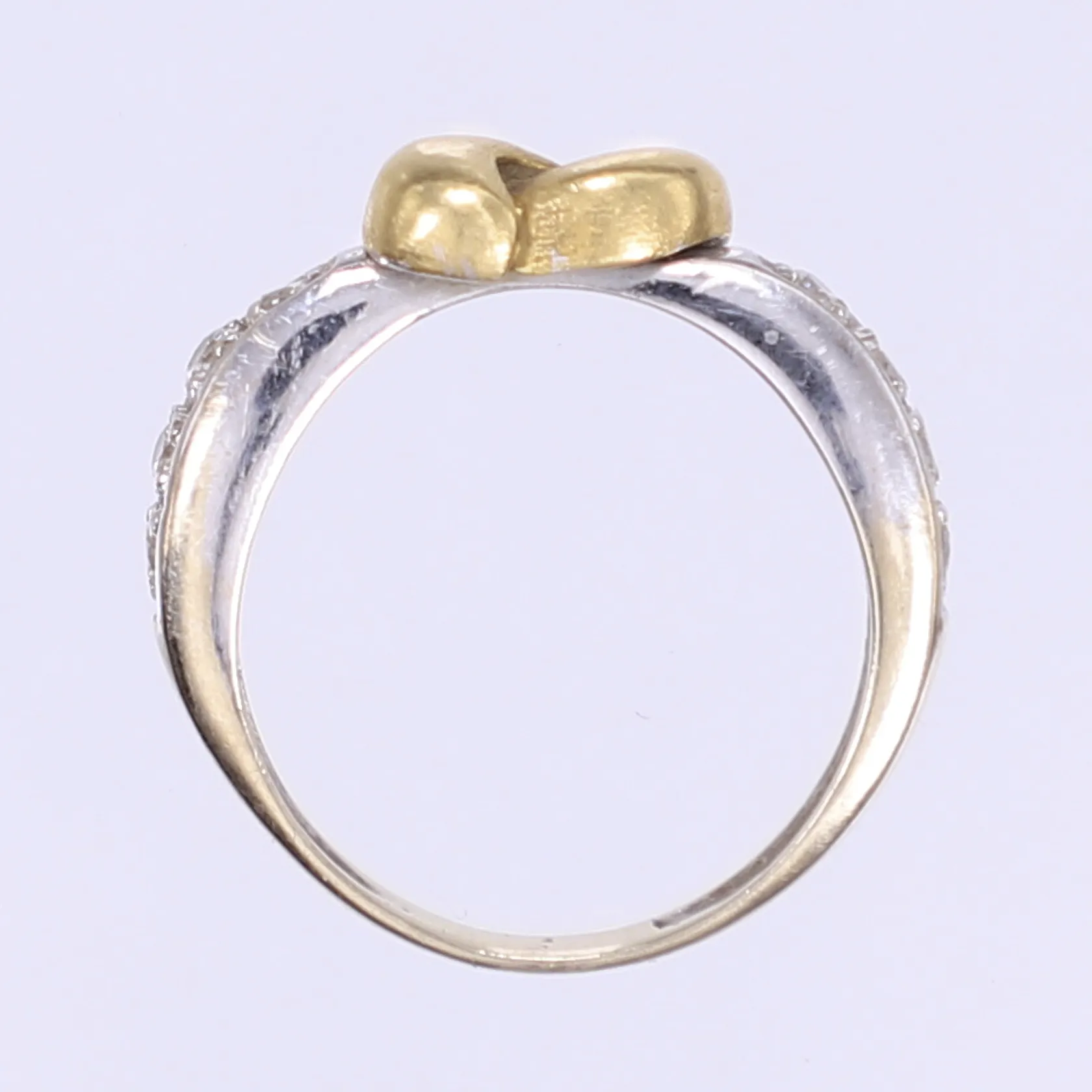 Ring med vita stenar stl 15½, bredd 2-5mm, detalj i rödguld, vitguld, 18K Vikt: 3,6 g.