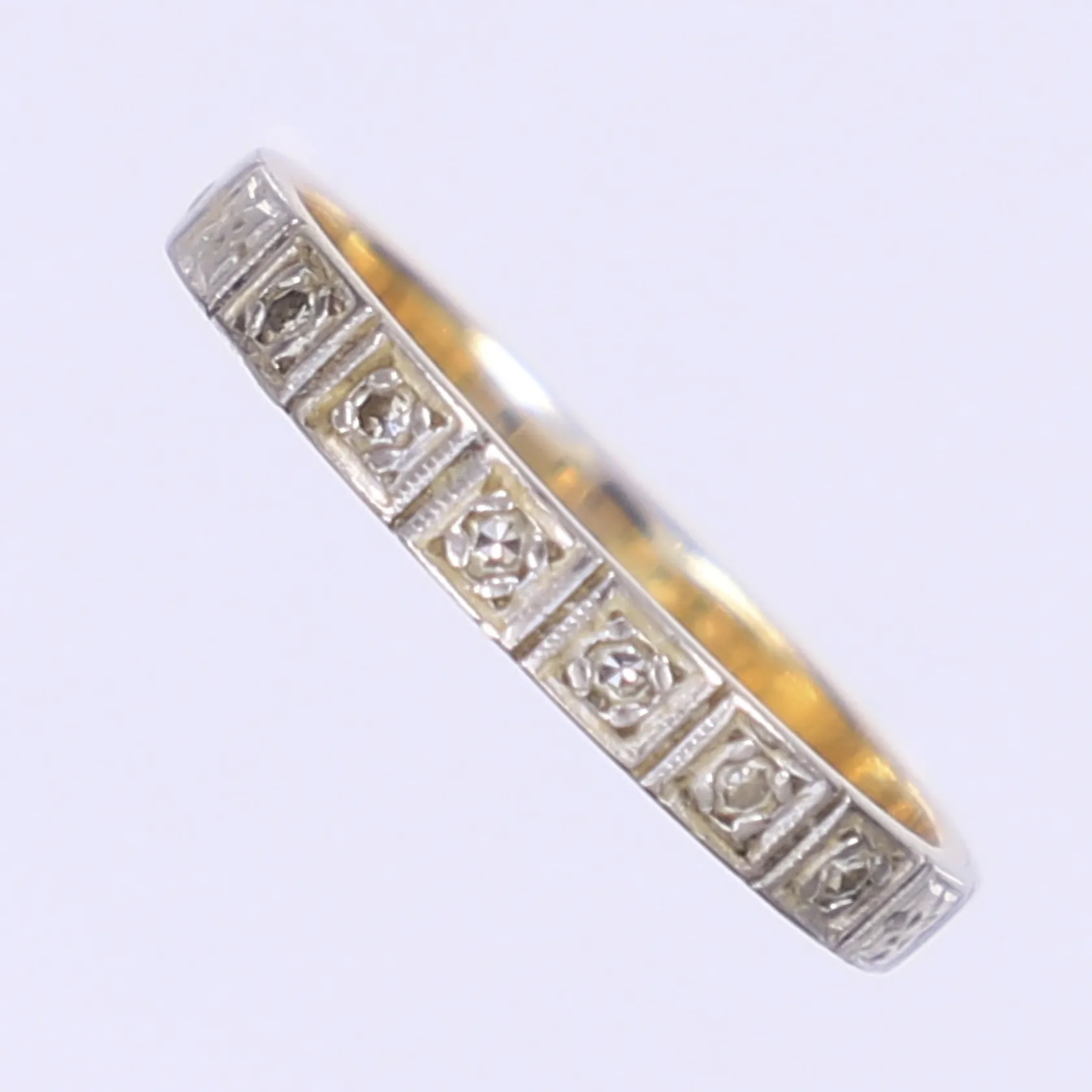Ring med diamanter totalt 6xca 0,005ct stl 17, bredd 2mm, vitguld, 18K Vikt: 2,2 g.