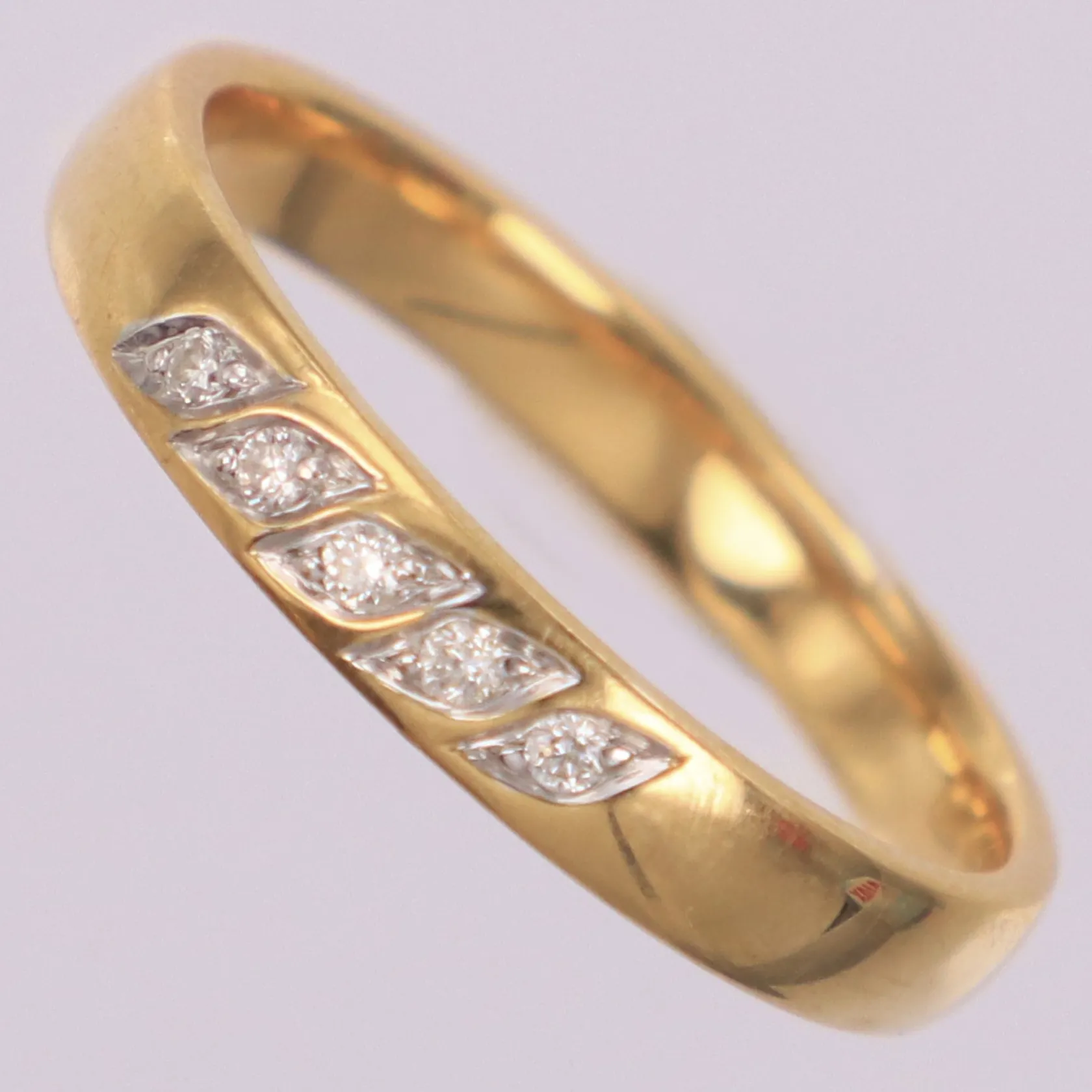 Ring med diamanter 5xca 0,01ct, stl:19, bredd 3,3mm, GHA, 18K Vikt: 4 g.