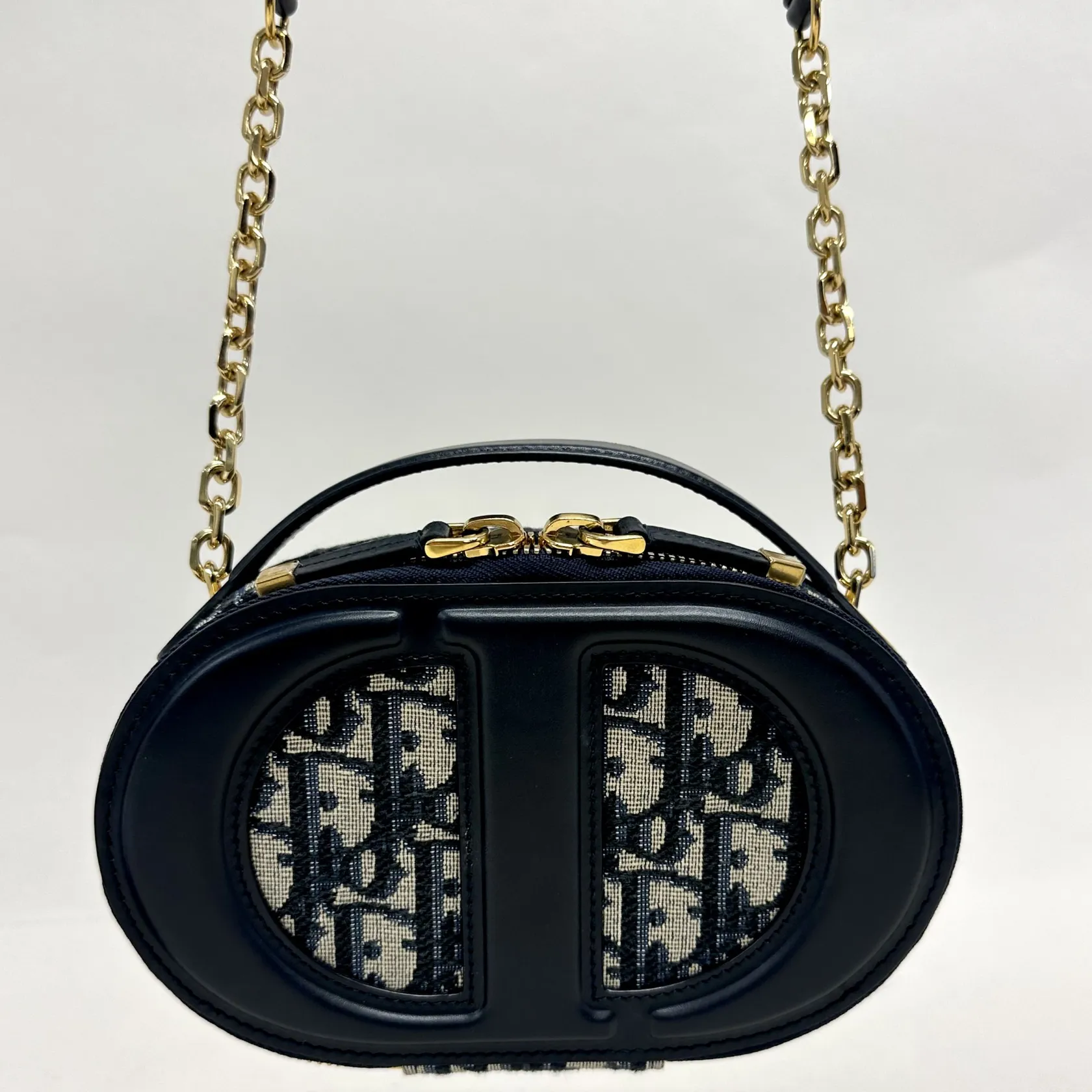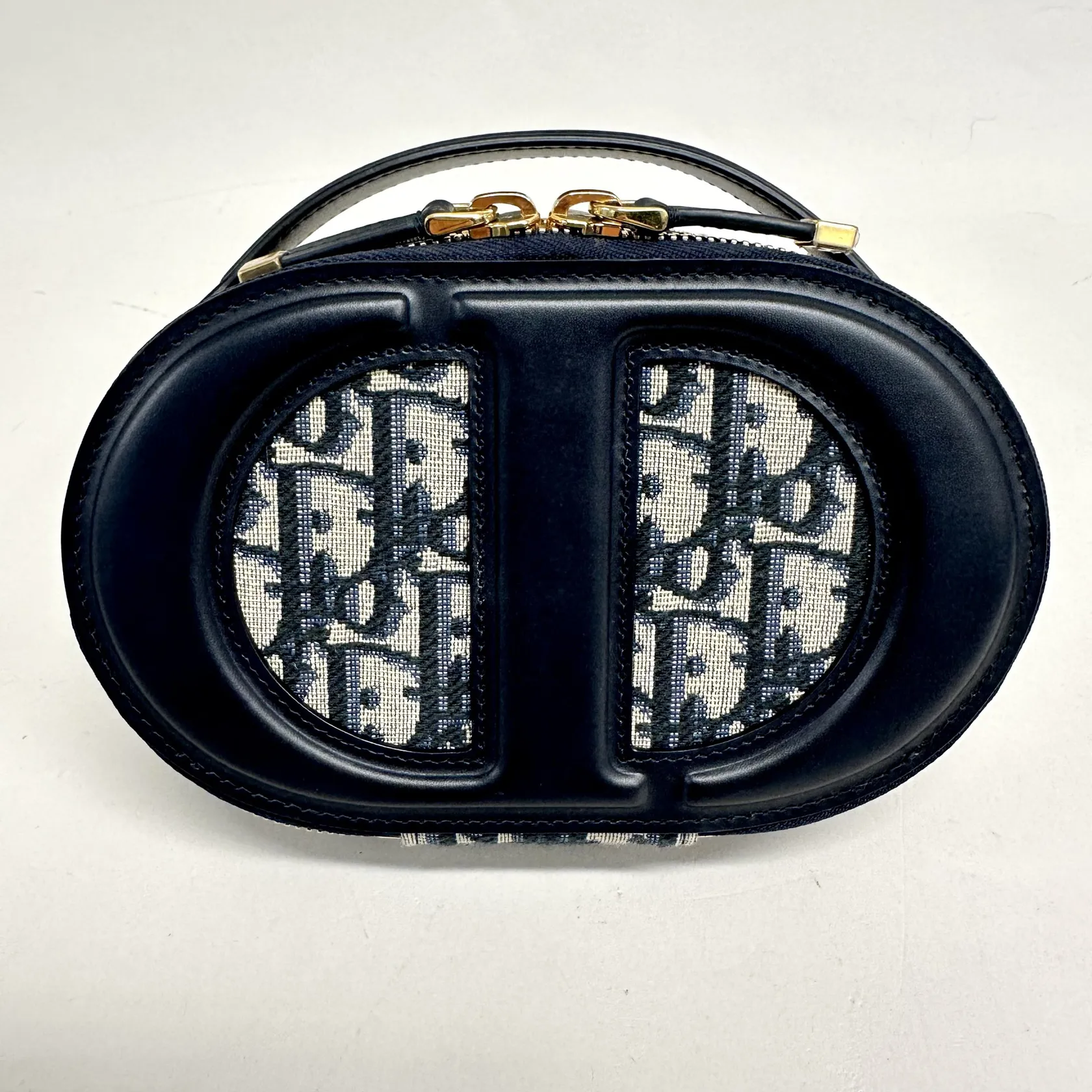 Handväska Christian Dior, CD signature oval camera bag blue Dior oblique jacquard, axelrem, 18x12cm, kvitto från juli 2023, dustbag