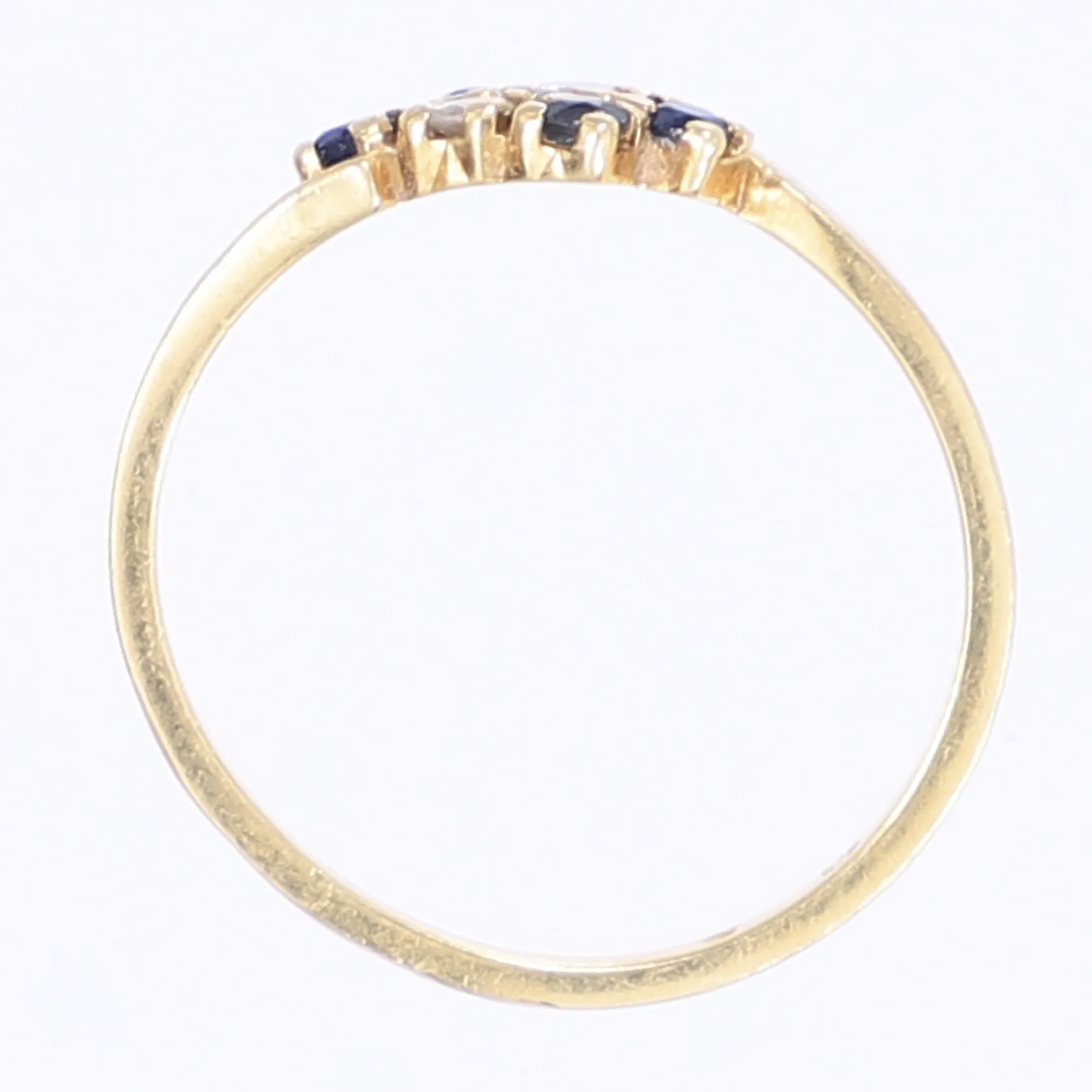 Ring med vita och blå stenar stl 16¾ bredd 1-5mm 18K Vikt: 1,7 g.