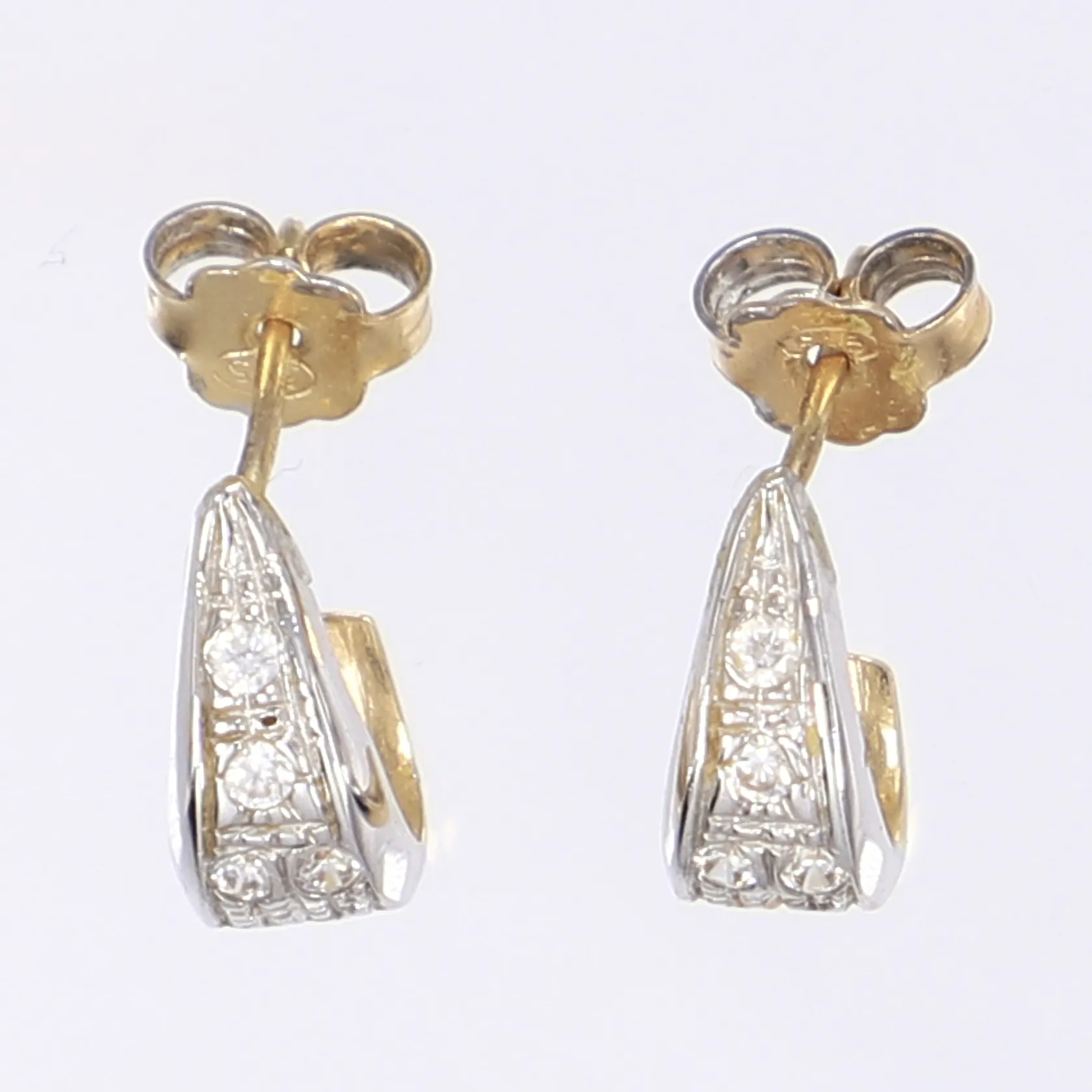 Ett par örhängen med vita stenar ca 5x4mm tvåfärgade 14K Vikt: 2,8 g.