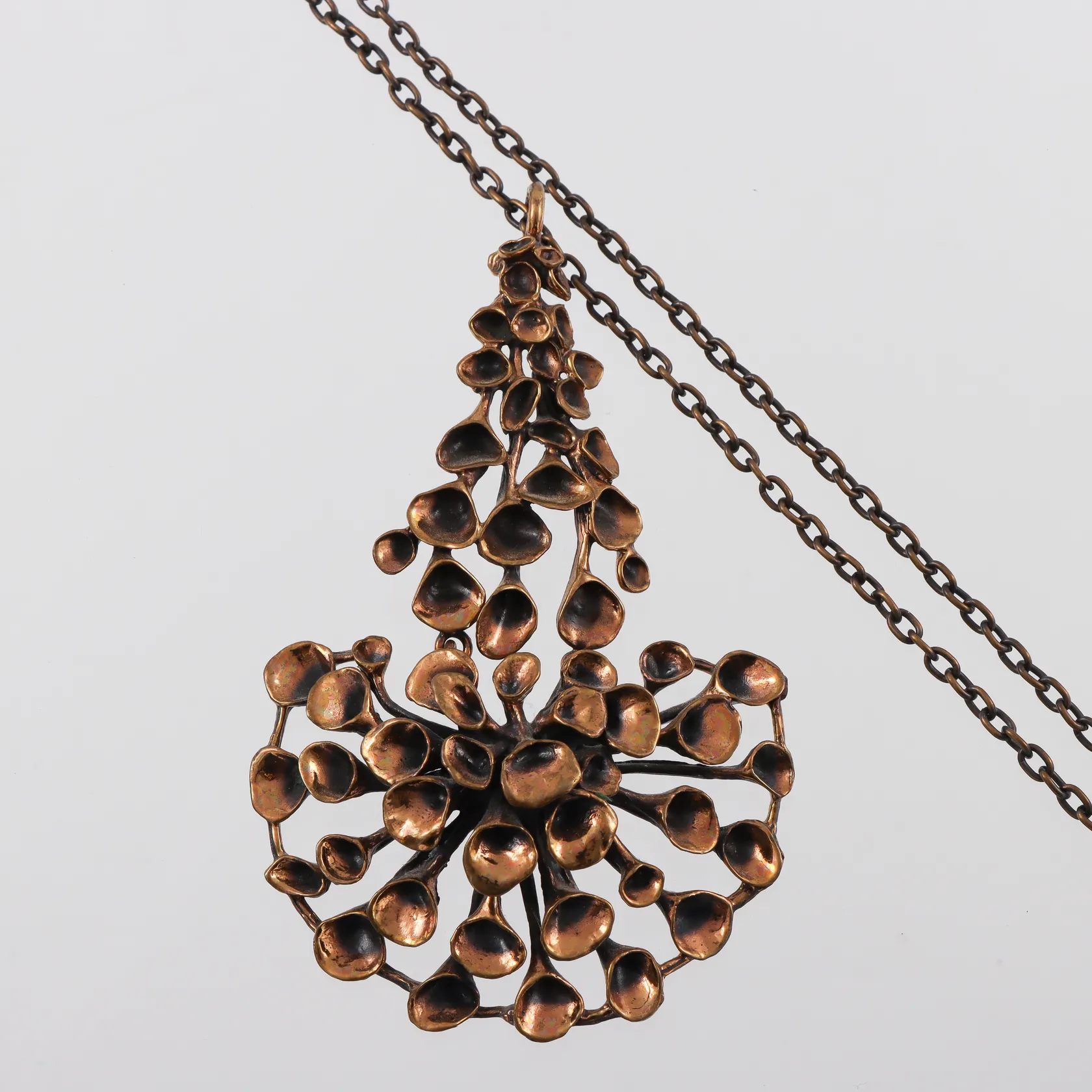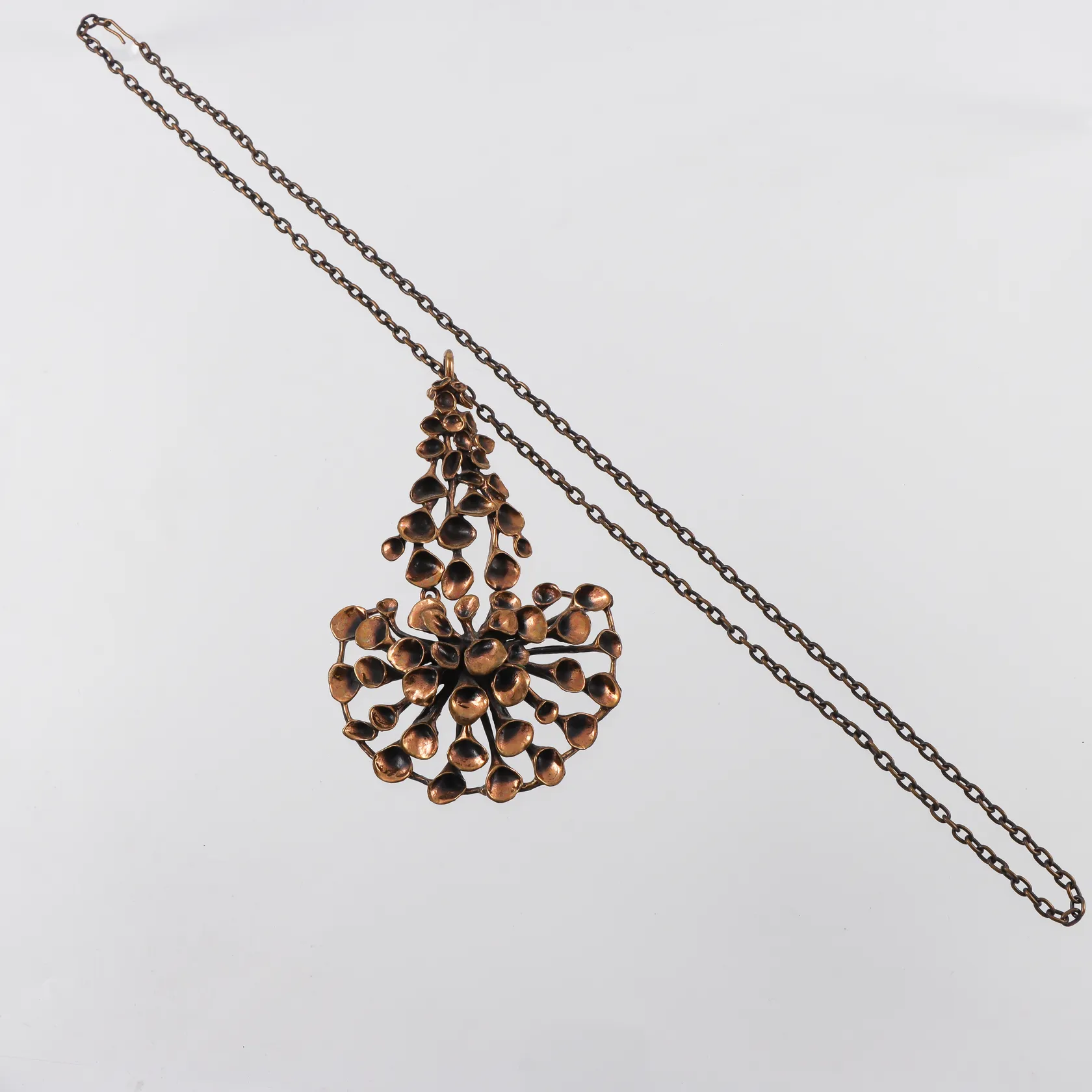 HANNU IKONEN. Halssmycke ur serien "Lava", brons, Finland,hängets höjd 11.5 cm,kedjans längd c 70 cm.