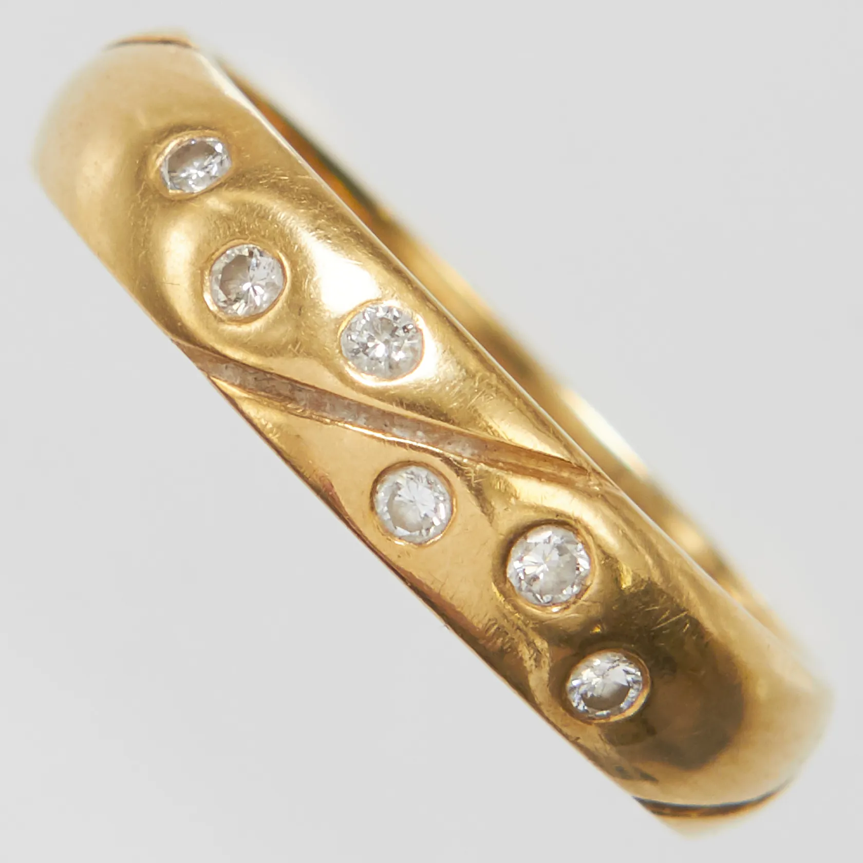 Ring med diamanter 6 x ca 0,01-0,02ct, stl17½, bredd 4,5mm, 18K Vikt: 3,9 g.