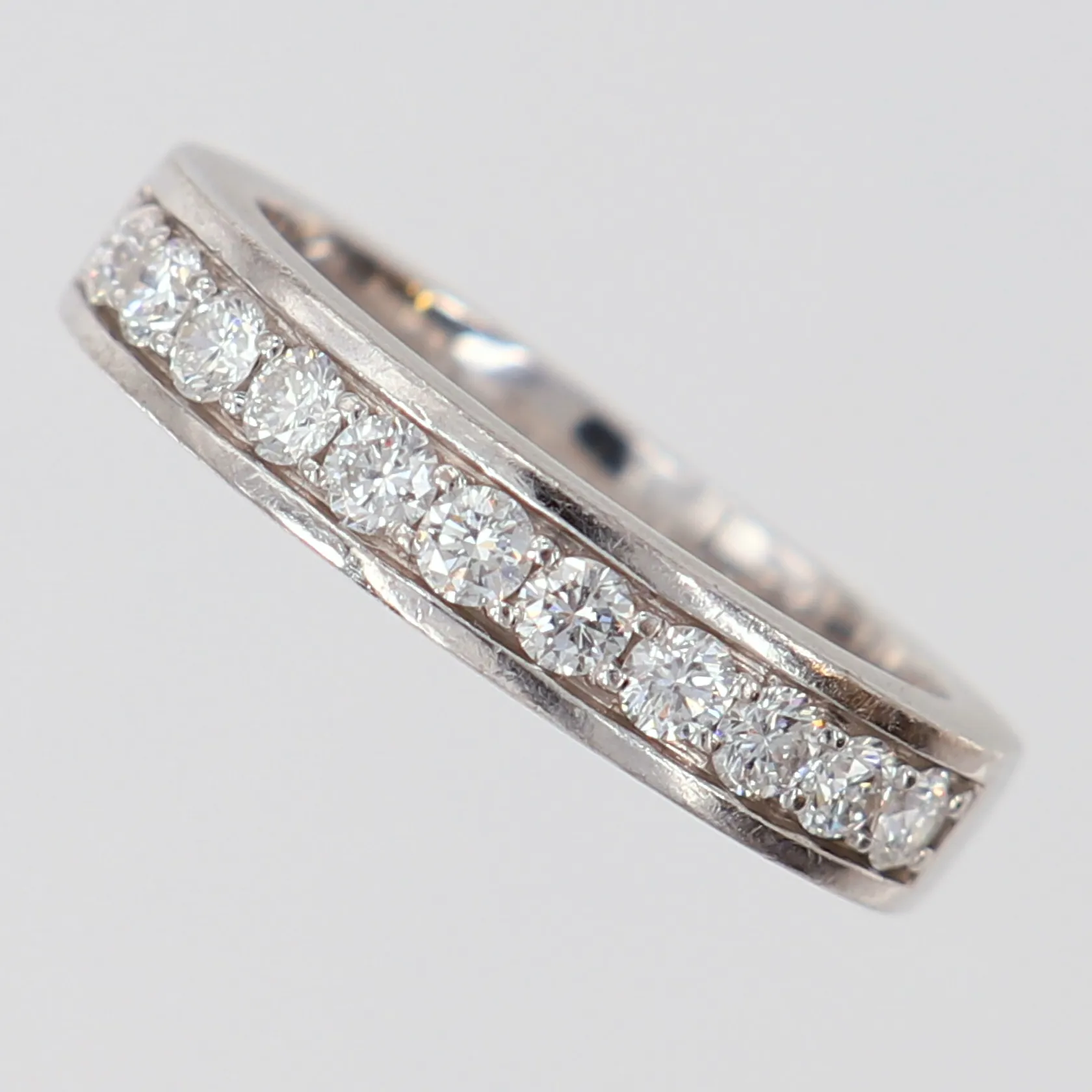Ring med briljantslipade diamanter 0,47ctv enligt gravyr, Kvalité ca W(H)/SI, stl: 16½, bredd 4mm, GHA, vitguld 18K. Vikt: 5,4 g.