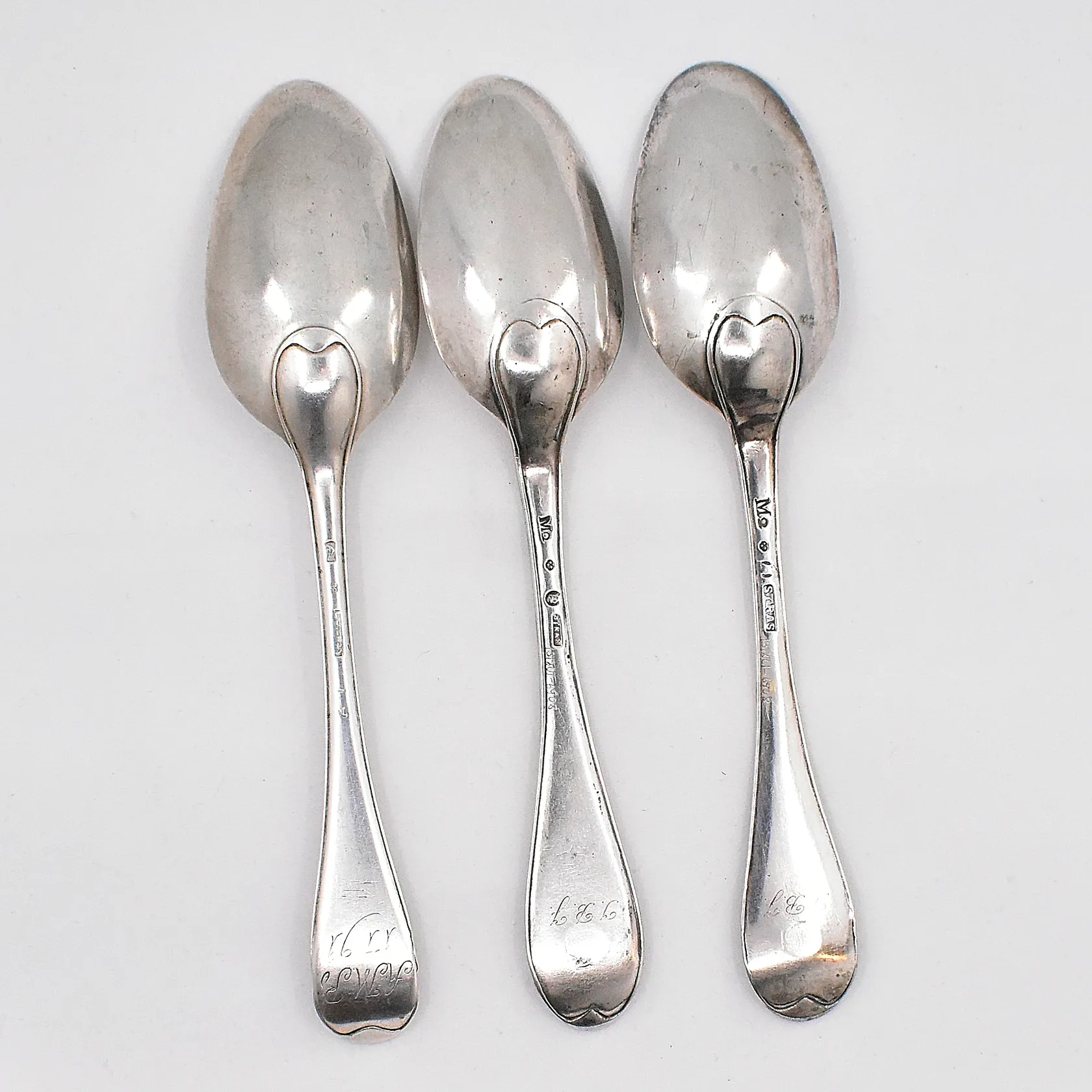 Tre matskedar, 21,5cm, Johan Stras Stockholm, år 1794, personlig gravyr, silver 830/1000 Vikt: 181,8 g.