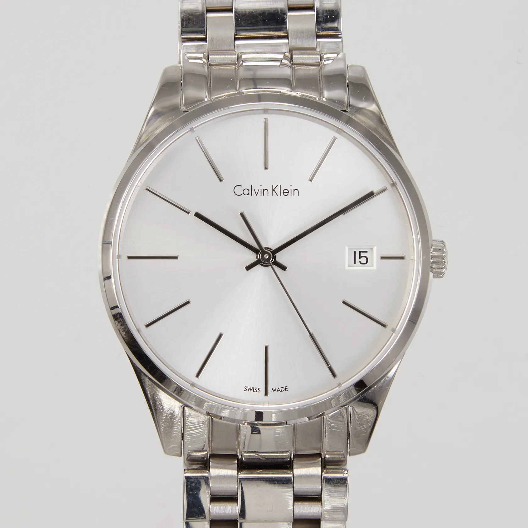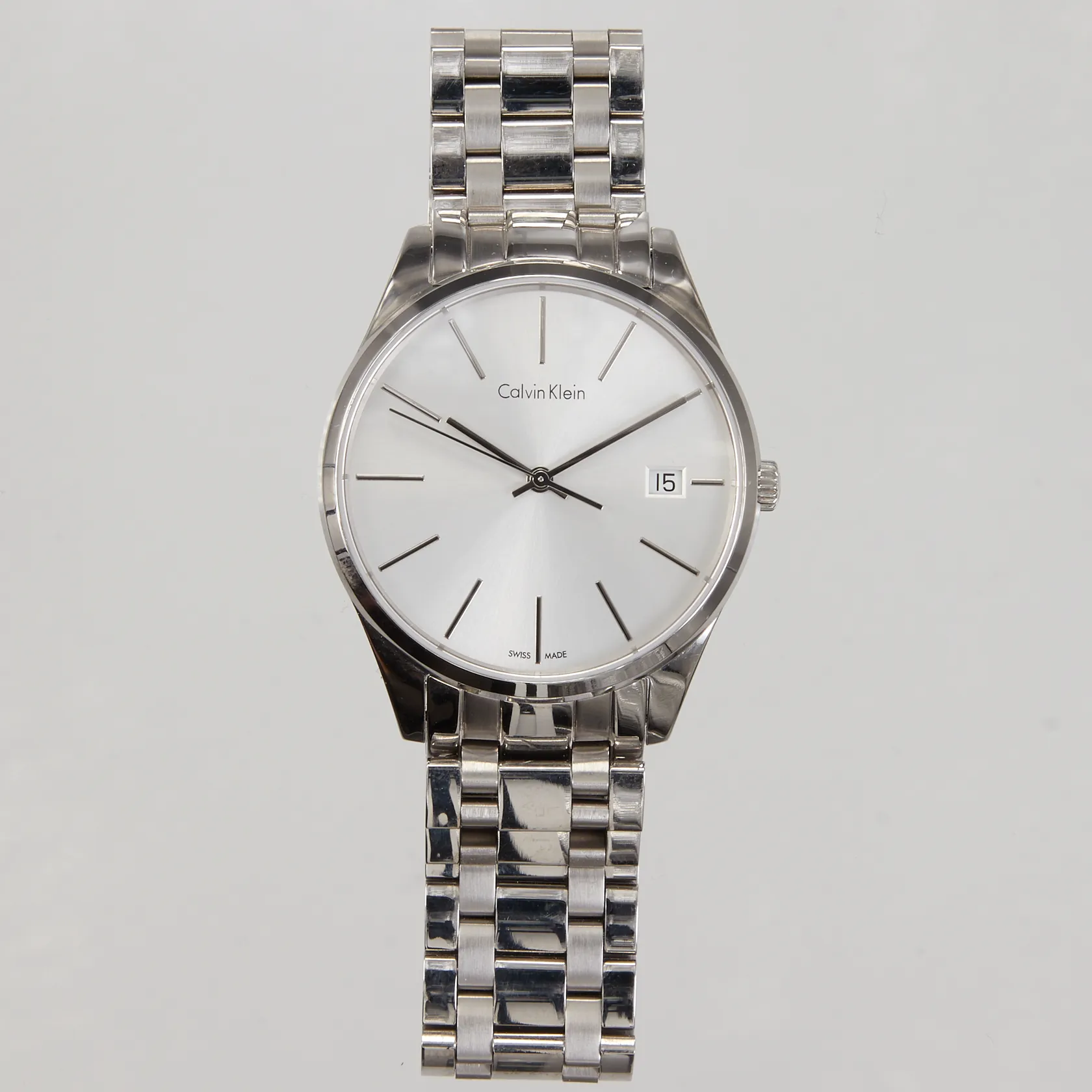 Armbandsur Calvin Klein stål quartz 36mm, refnr K4N 231, datum, stållänk ca 18cm, viklås, box.