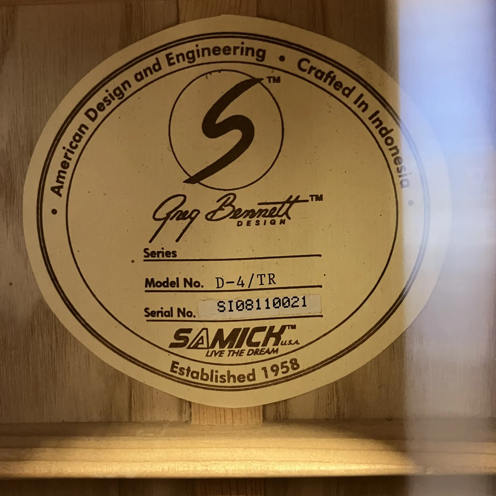 Akustisk gitarr Greg Bennet by Samick D-4/TR, Serienummer SI08110021, Indonesien, smärre stötskador, repor, hårt case, case sluter ej helt i botten. Skickas med postpaket.