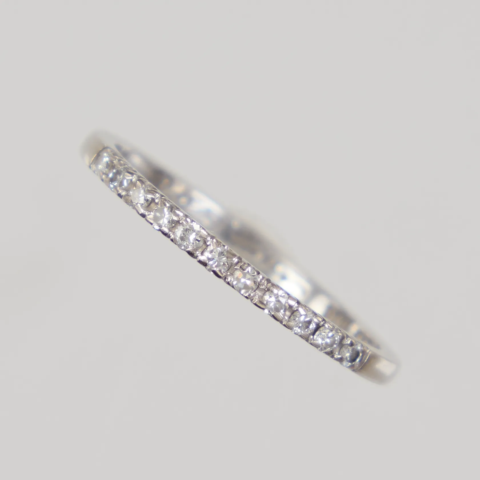 Ring Halvallians med brilliantslipade diamanter 11 x ca 0,01ct, stl:17 bredd:1,5, gravyr, vitguld 18K Vikt: 1,7 g.