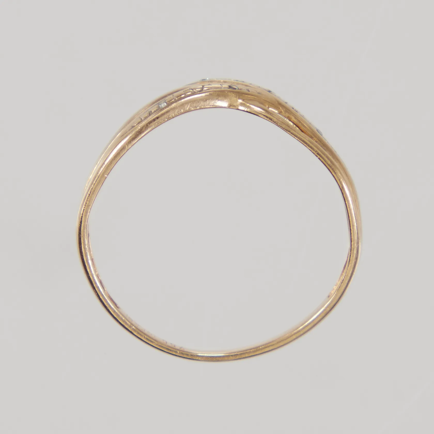 Ring med 8/8-slipade diamanter, stl:18, bredd 3mm, 18K Vikt: 1,4 g.
