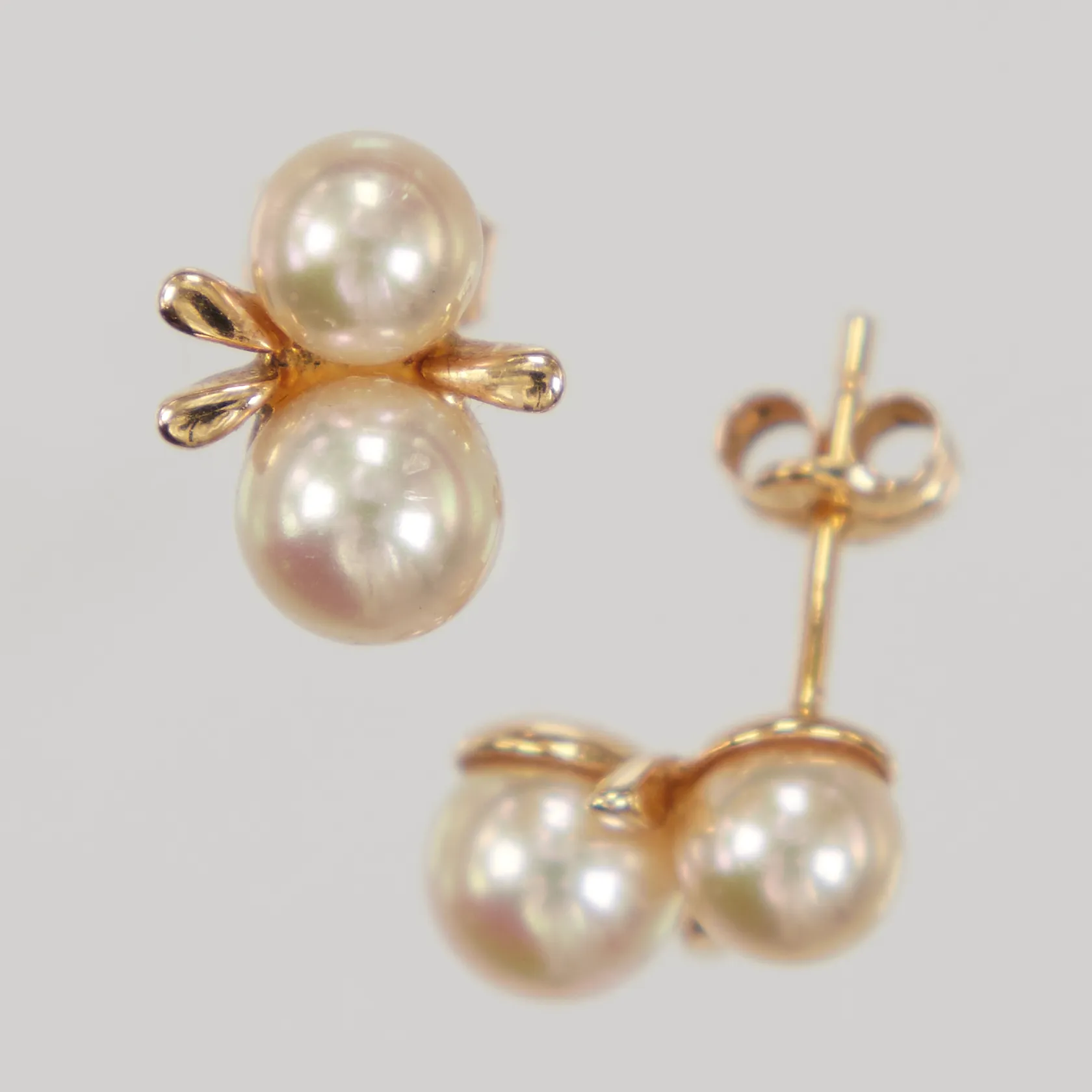 Ett par örhängen med pärlor 11mm, stift, omaka stopp 18K Vikt: 2,6 g.