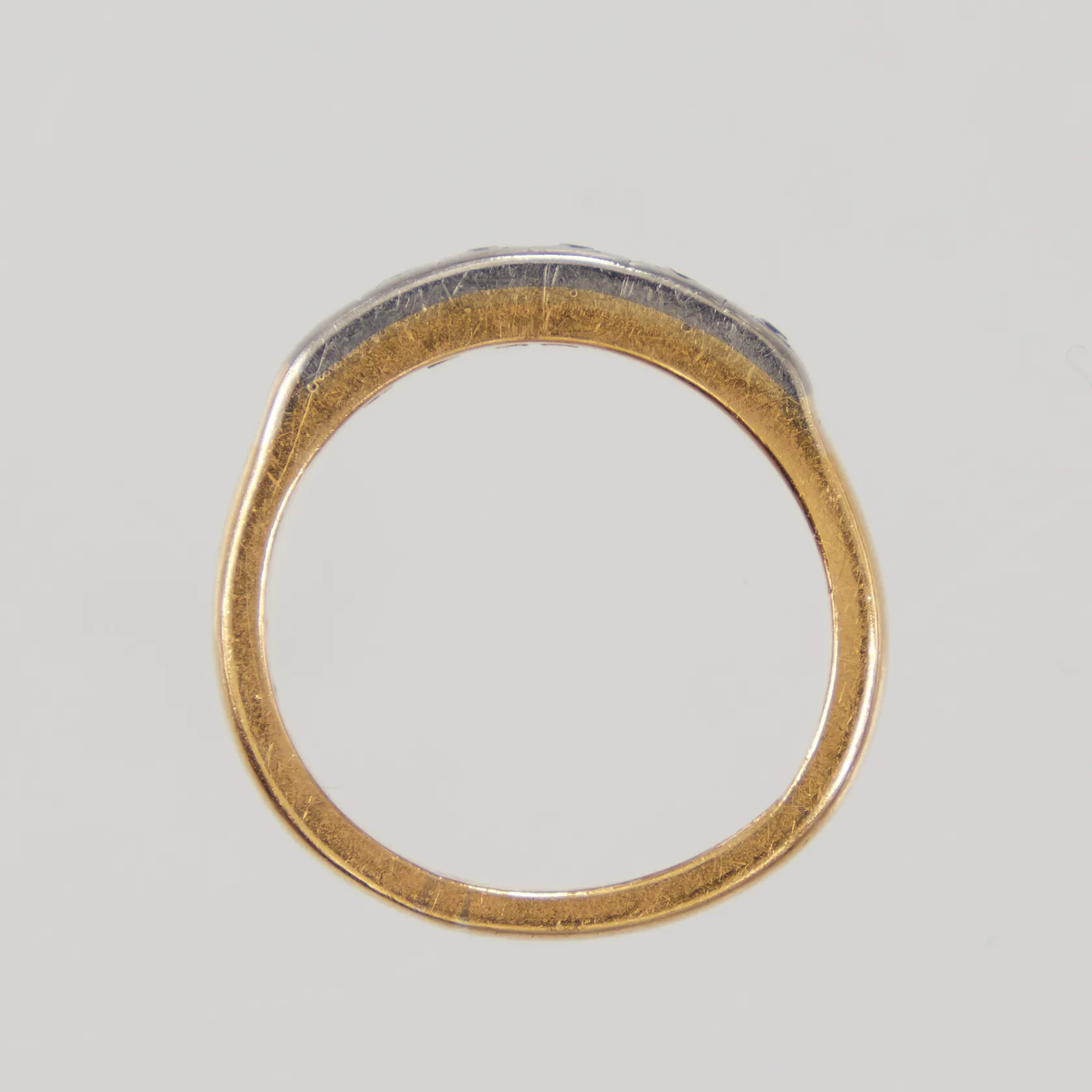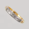 Ring med åttkantsslipade diamanter 6 x ca 0,005ct , stl:17 vitguldsdetaljer, nagg, slitage 23K Vikt: 6,4 g.