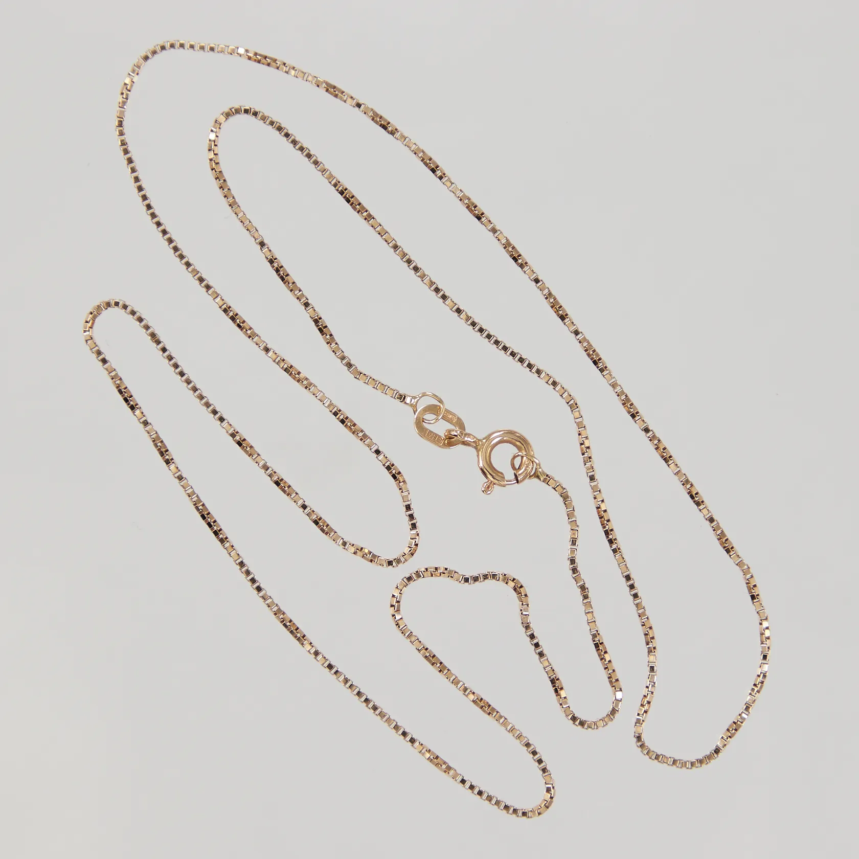 Kedja Venezia, längd 45,5cm, bredd 1mm, små ojämnheter, 18K Vikt: 2,5 g.