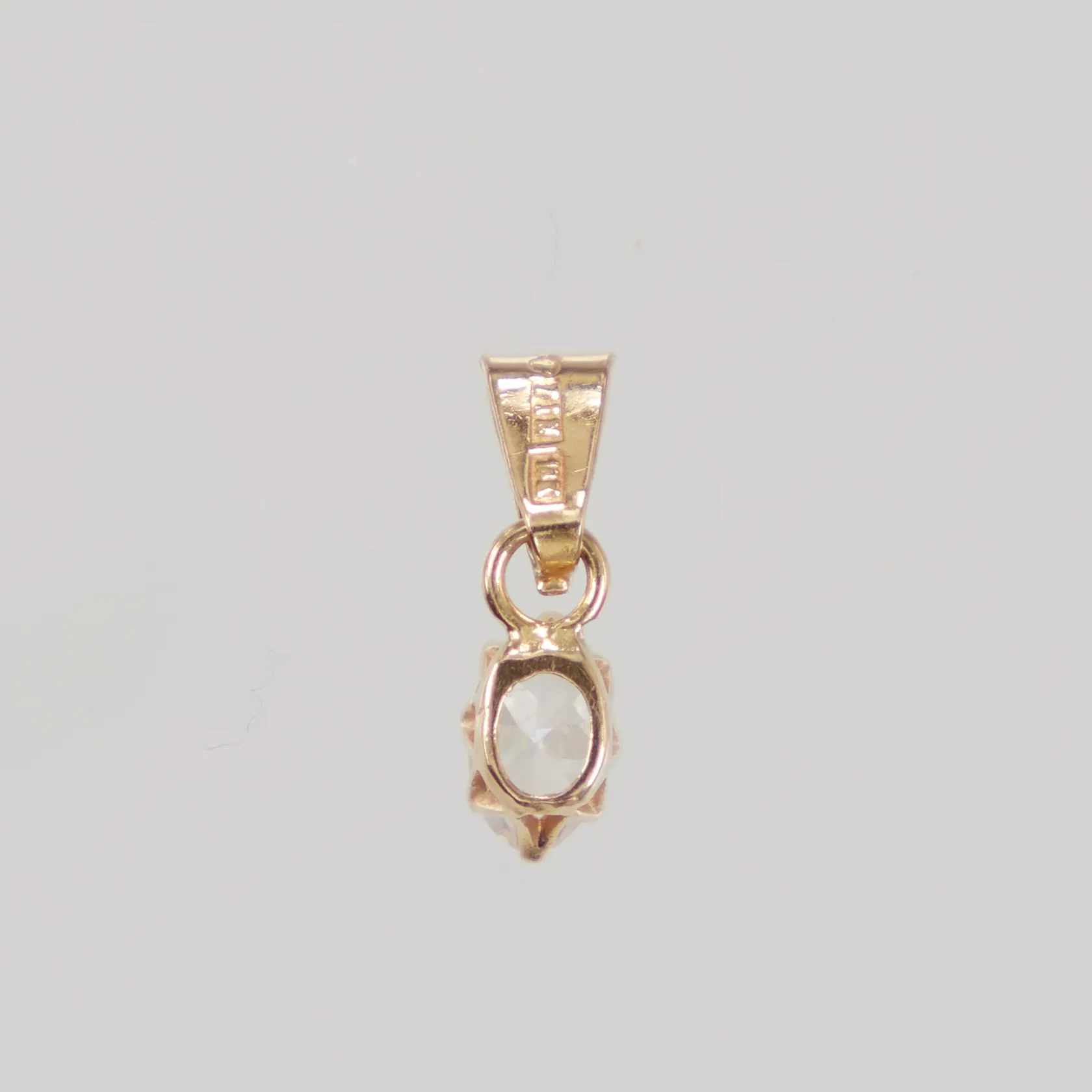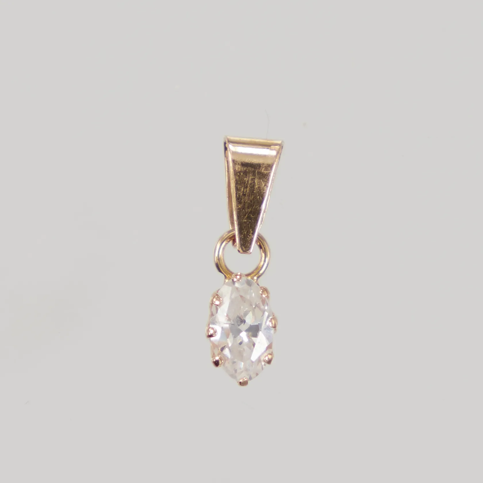 Hänge med vit sten, längd inkl ögla 13mm, bredd 3,5mm, 18K Vikt: 0,4 g.