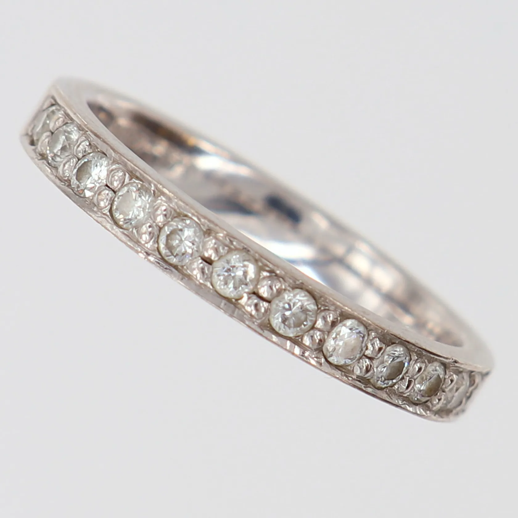 Ring med diamanter 0,35ctv enligt gravyr, stl:18¼, bredd 3mm, vitguld 18K. Vikt: 4,5 g.