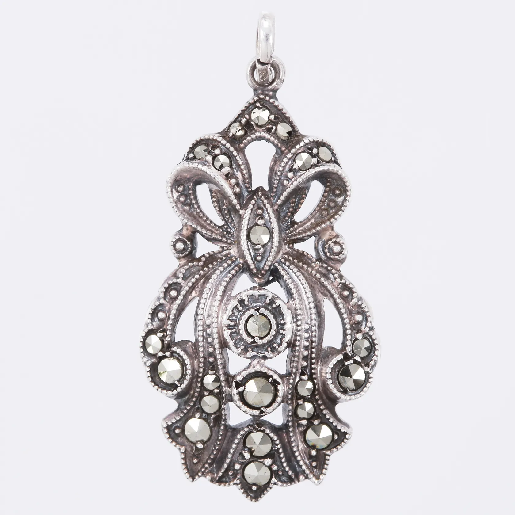 Hänge med markasiter längd: ca 3,3cm bredd: ca 11mm, 830/1000 silver Vikt: 2,8 g.