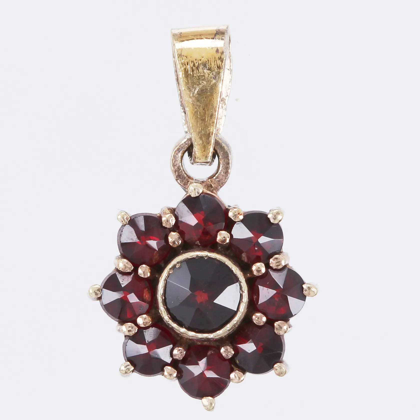 Hänge med granater i förgyllt silver längd: ca 18mm bredd: ca 11mm, 830/1000 silver med svensk import stämpel Vikt: 1,2 g.