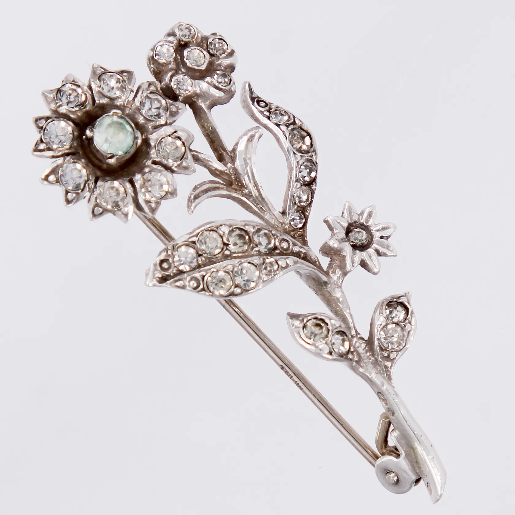 Brosch med vita stenar, längd: ca 4,8cm, bredd: ca 19mm, 830/1000 silver med svensk import stämpel Vikt: 4,9 g.