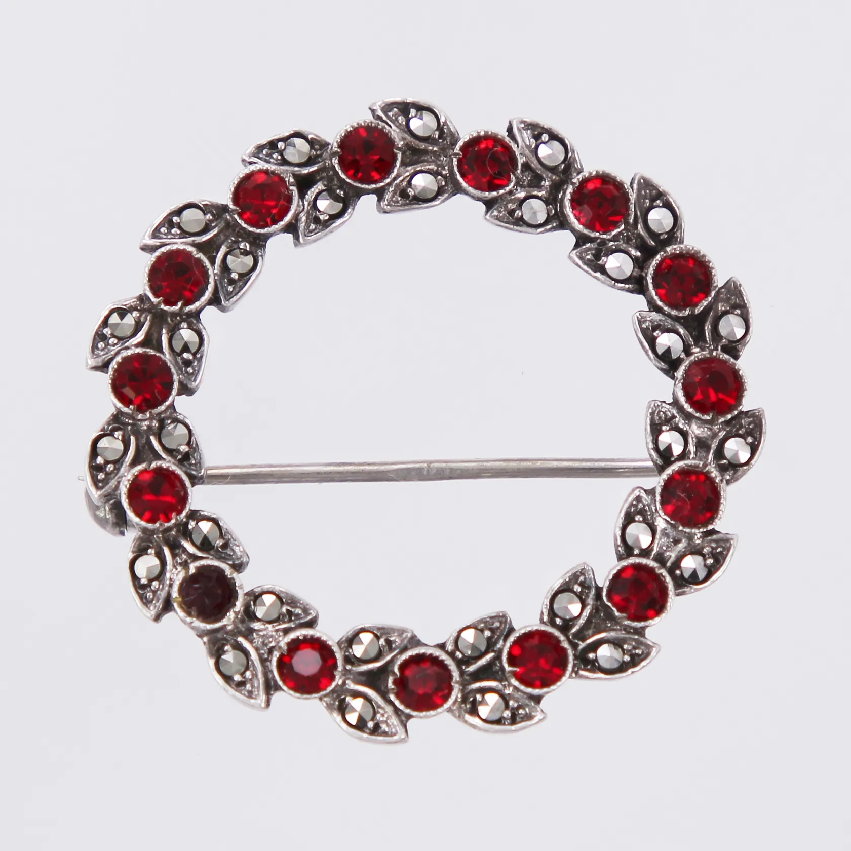 Brosch med markasiter och röda stenar Ø