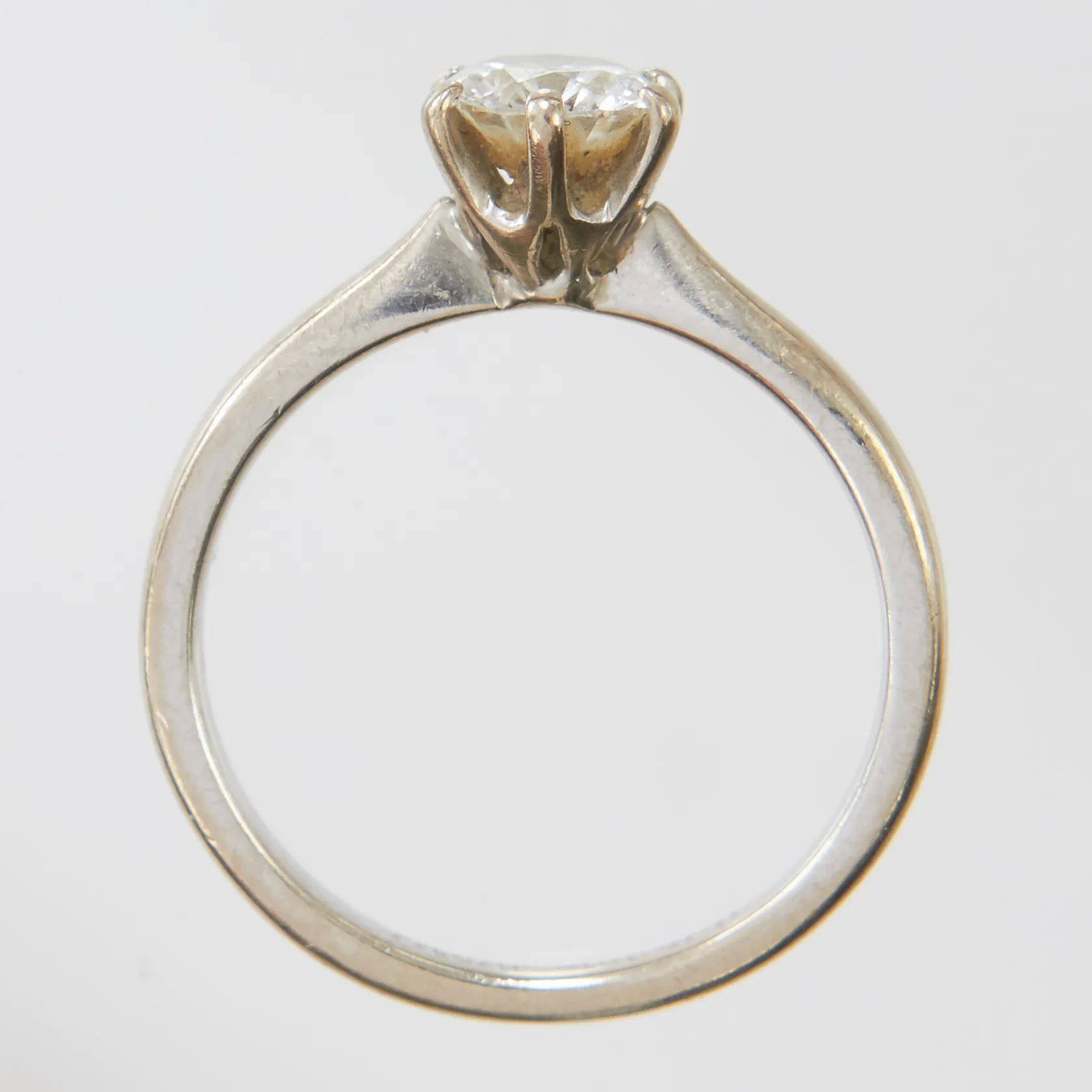 Ring med briljantslipad diamant 1 x ca 0,65ct TW(G)/VVS2, stl16, bredd 2-7mm, GIA6232816970, vitguld, engelska stämplar, Birmingham, gravyr, behov av omrodering, 18K Vikt: 2,8 g.