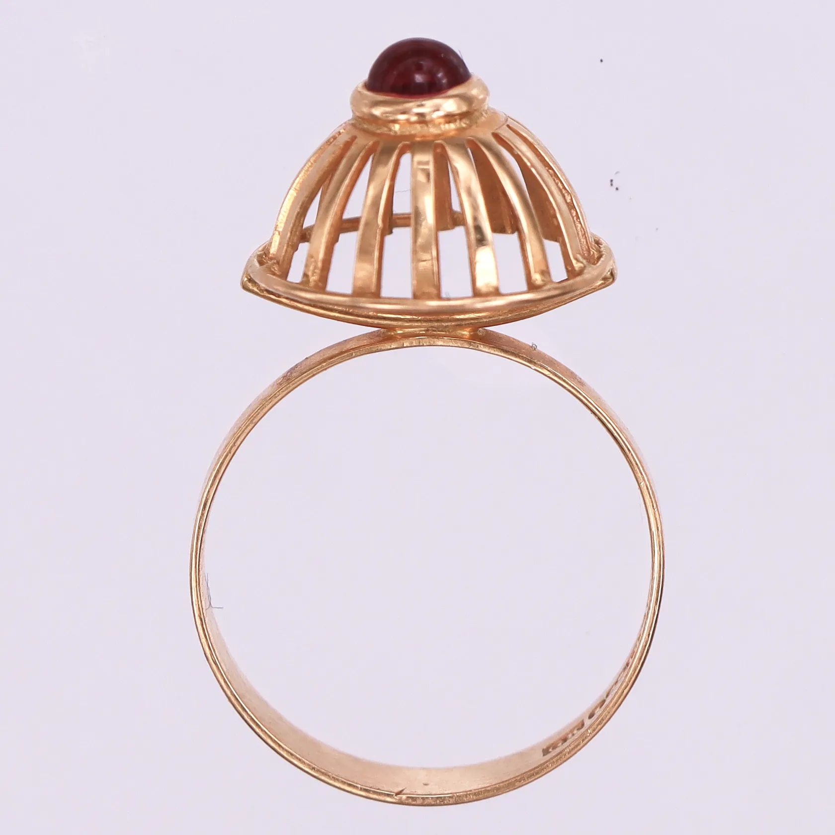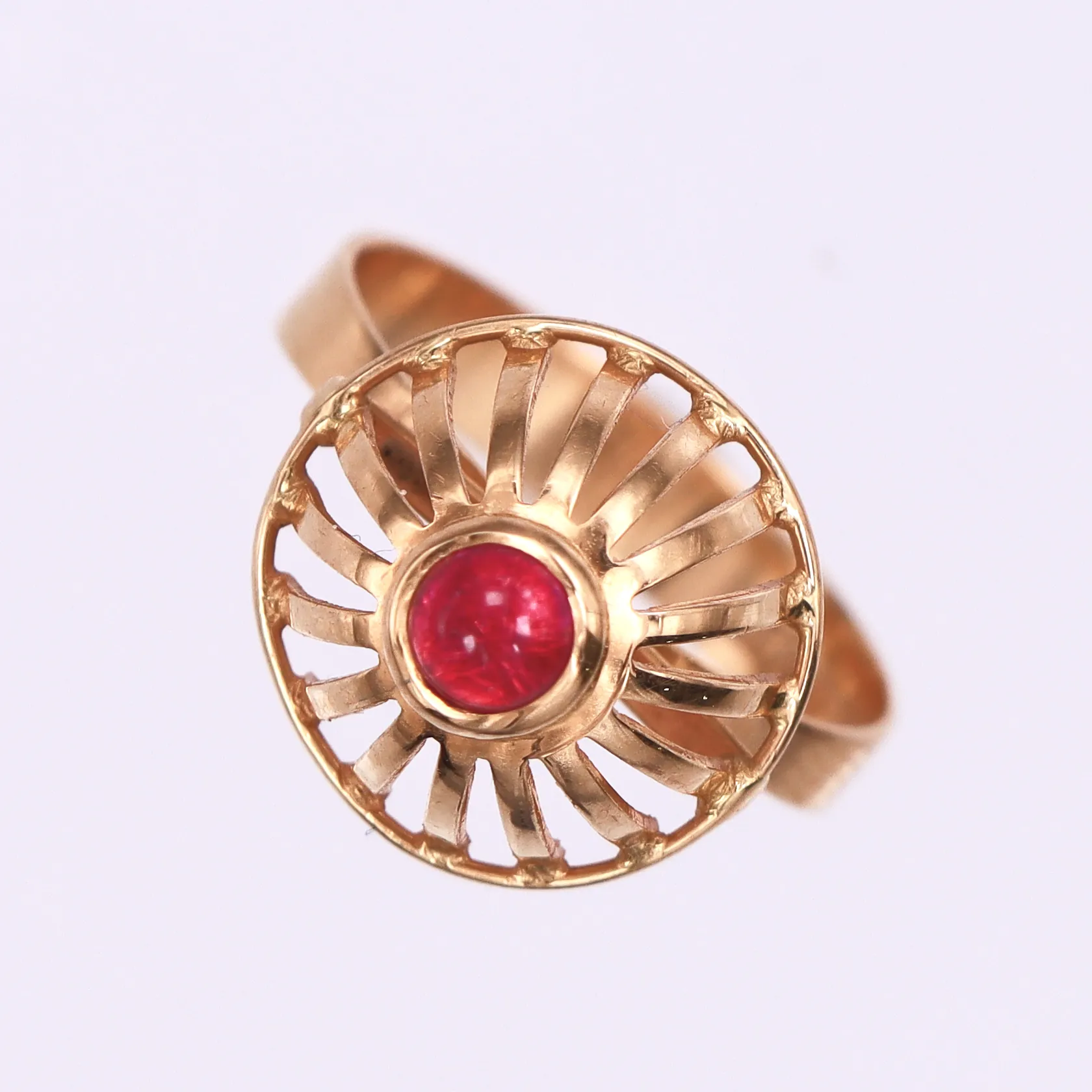 Ring med röd sten, Kaplans Stockholm år 1969, Stl:17¼, bredd: 2,6-13,5 mm, 18K. Vikt: 2,8 g.