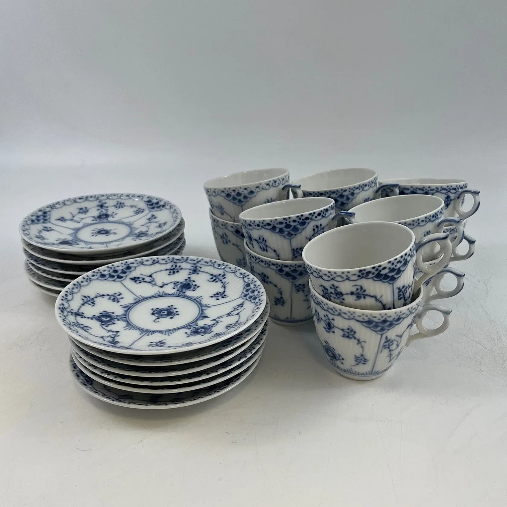 ROYAL COPENHAGEN. "musselmalet", halvblond,kaffekoppar 12 st och fat 12 st nummer 719.Obs skickas ej.