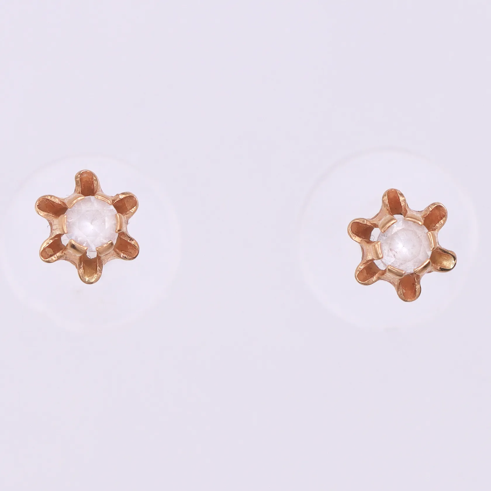 Ett par örhängen med vita stenar, diameter ca 5.8 mm, 18K. Vikt: 0,9 g.