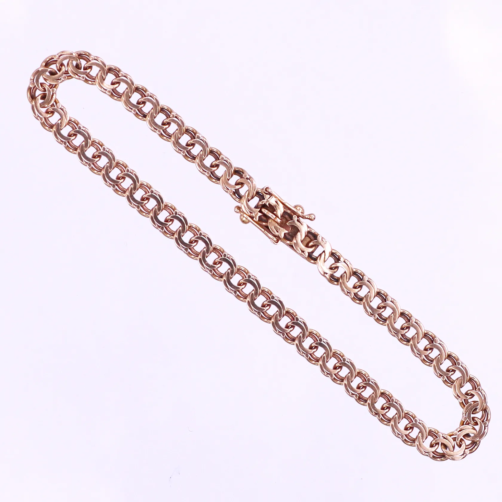 Armband Bismarck,Svenska Guldvaruaktiebolaget Stockholm,längd ca 19 cm,bredd 4.6 mm,18k. Vikt: 8 g.