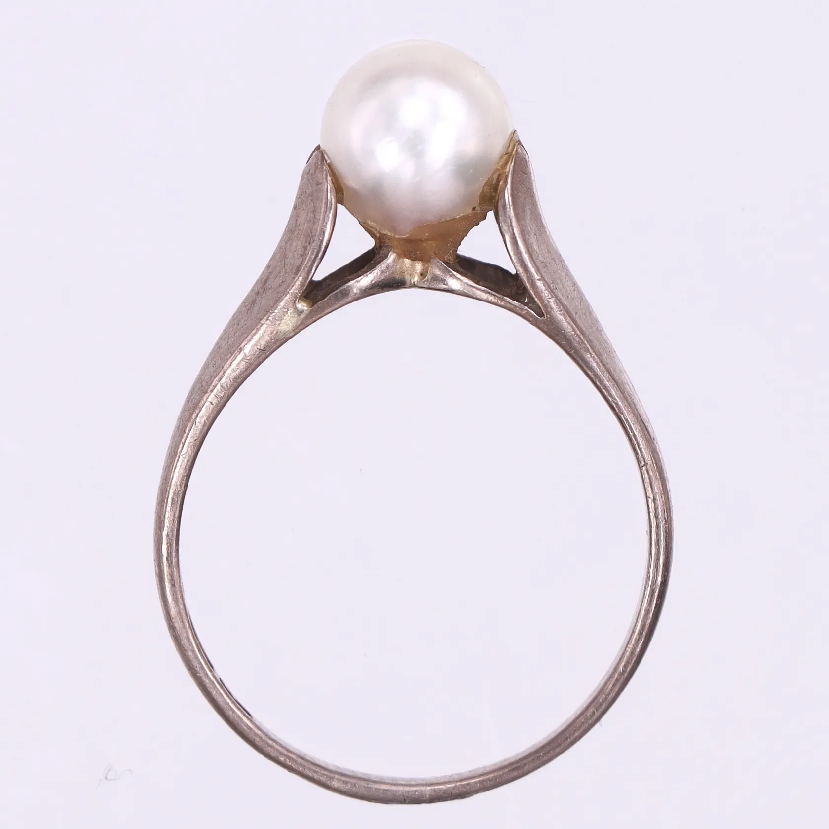 Ring med odlad pärla, Stl:17½, bredd 1.8-7mm, vitguld, 18k. Vikt: 3,2 g.