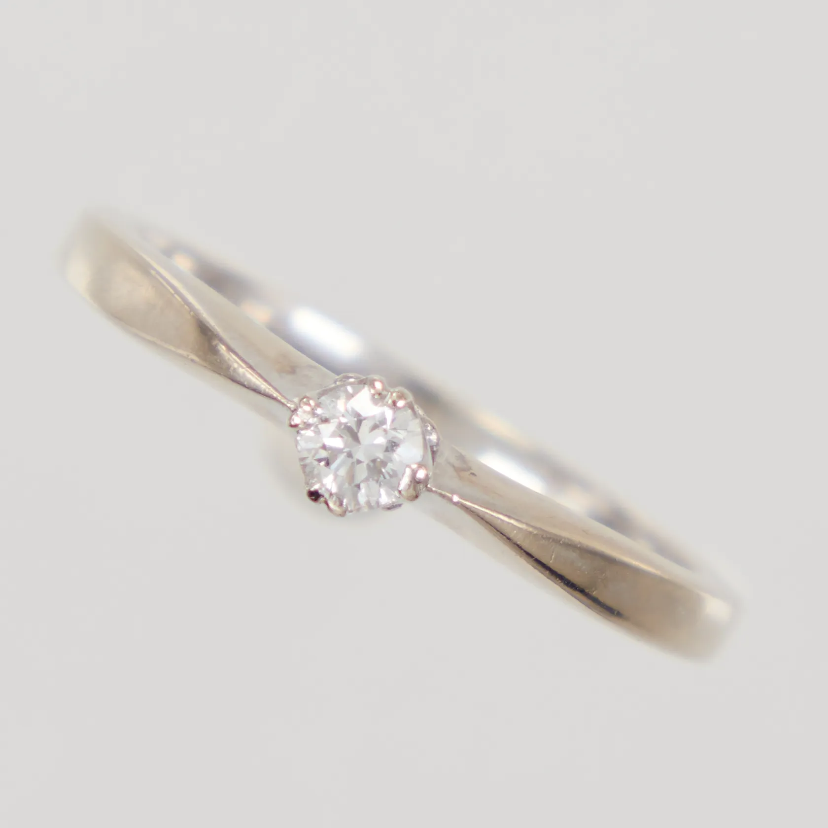 Ring, stl 15½, bredd 1,6-3,3mm, diamant 1x0,10ct enligt gravyr, bör omrodieras, vitguld, GHA, 18K, Vikt: 2,1 g.