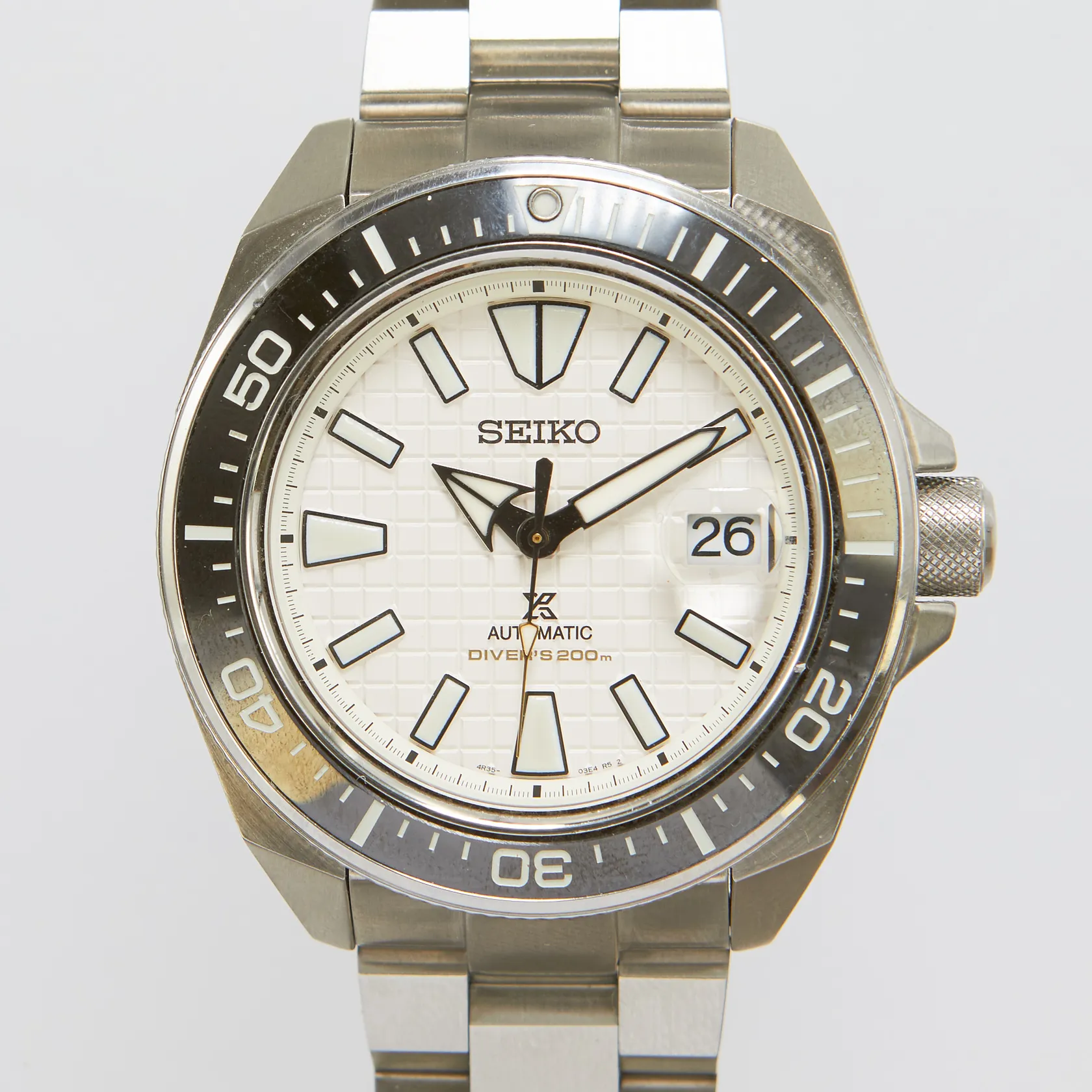 Herrur Seiko Prospex Samurai, stål, automatisk, ref: SRPE37, boettnr: 4R35-03W0, snr: 067319, datum, stållänk ej original, viklås, box.