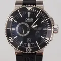 Herrur Oris Aquis Small Second Date, titan, automatisk, datum, Ø46mm, refnr: 7664, serienummer: 31-94581, gummiarmband med viklås i stål, länk i titan medföljer, länken repig, kopia på värderingsintyg Kaplans, kopia på servicekvitto Franks Ur 2024-04-11 (servicekostnad 17,350kr), servicefodral, inga andra tillbehör