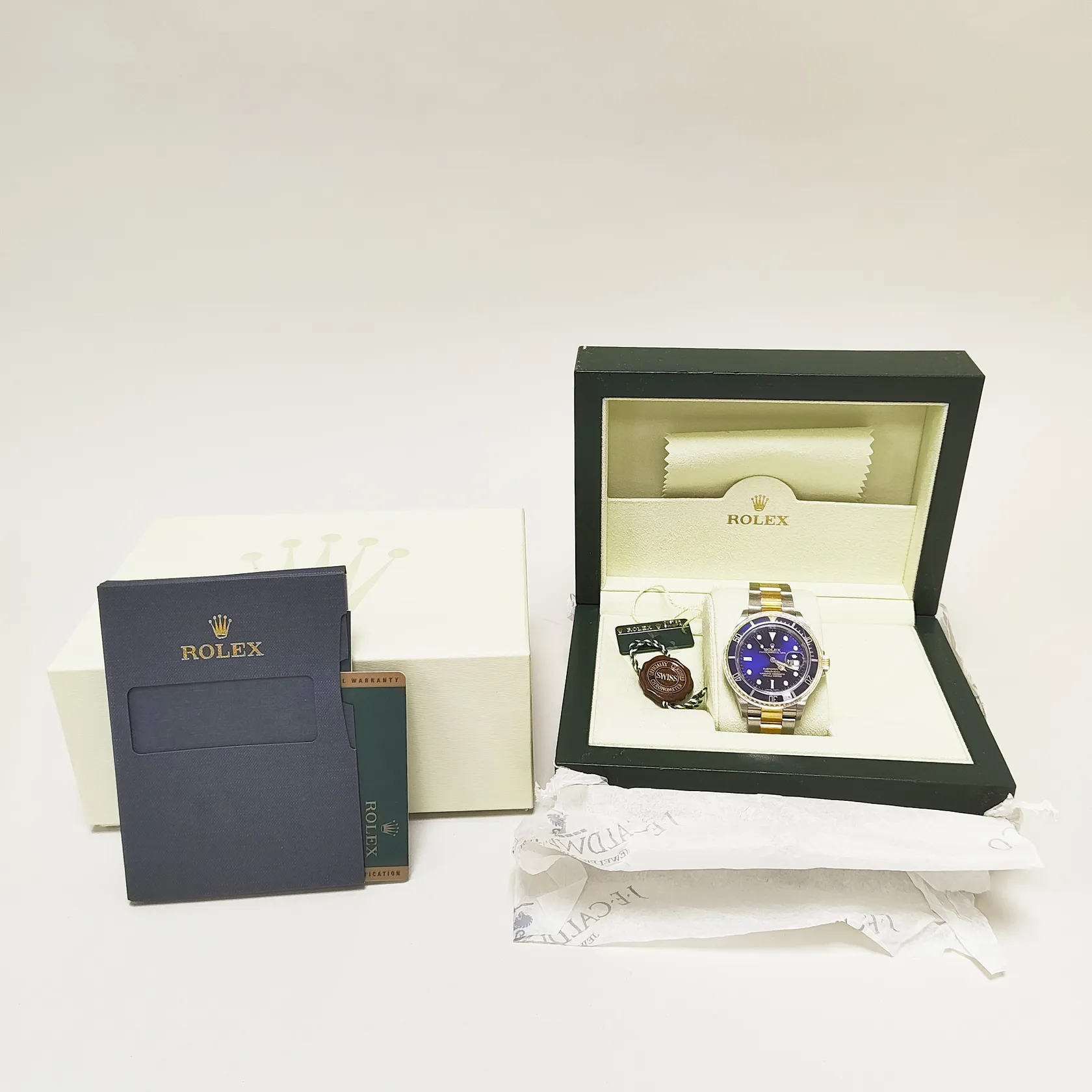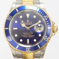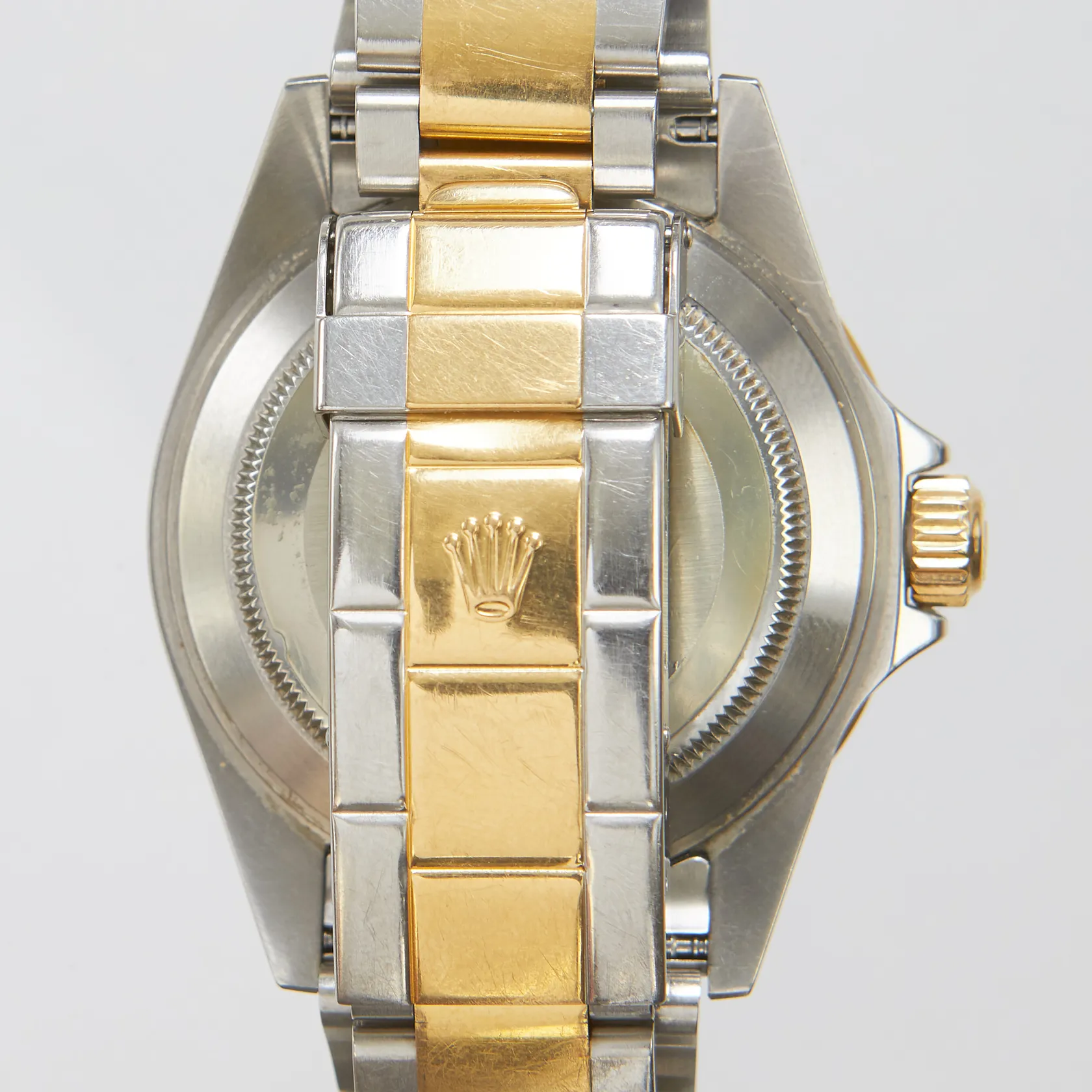 Herrur Rolex Submariner stål/guld automatisk 40mm, ref 16613, snr M274260, cal. 3135, verknr 32040932, safirglas, datum, oysterlänk stål/guld ref 923253/PJ2, repiga länkar, viklås, skyddsring, tag, certifikat Carlyl & Co 2008, kvitto, box, ytterkartong.