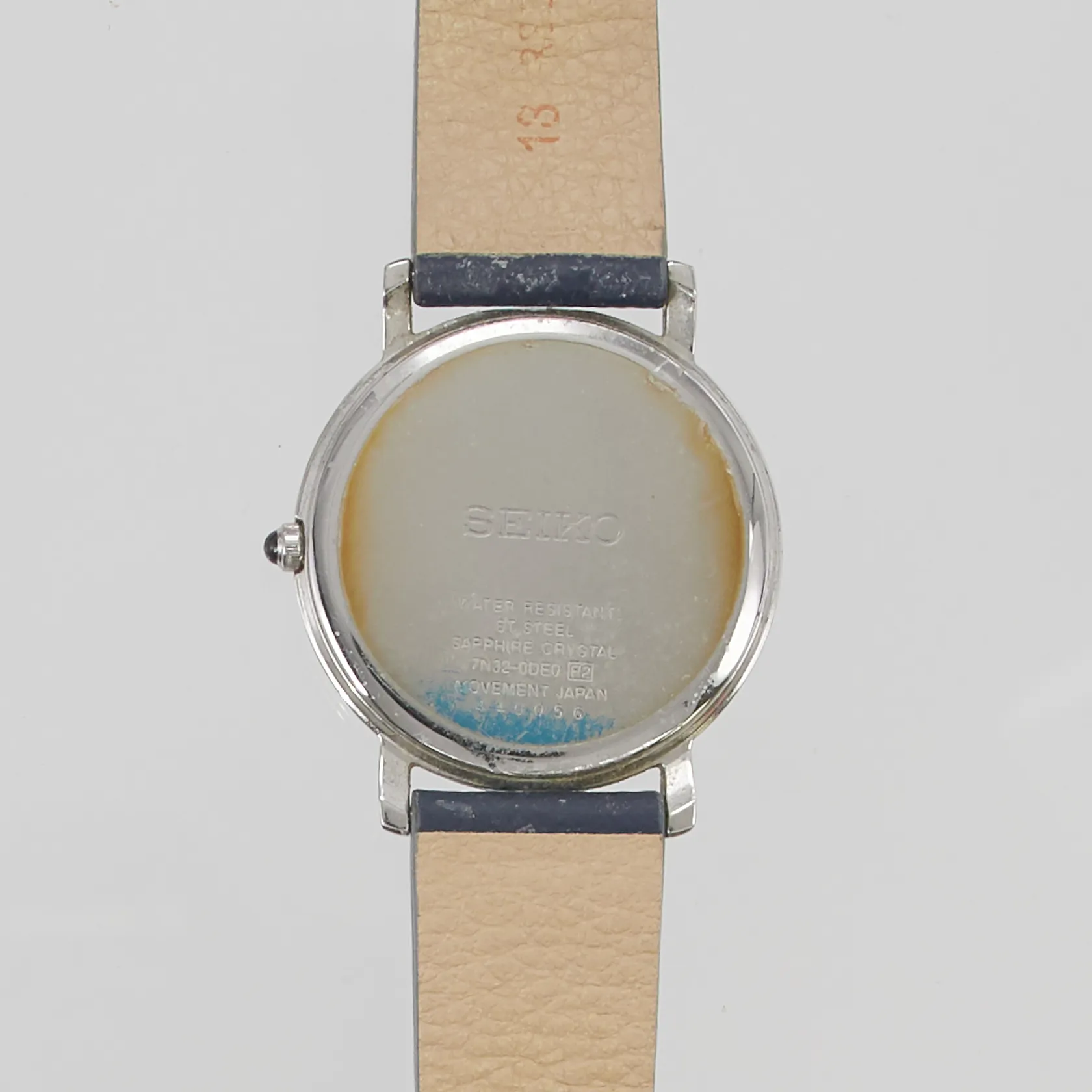 Herrur Seiko 34mm stål quartz, läderband.