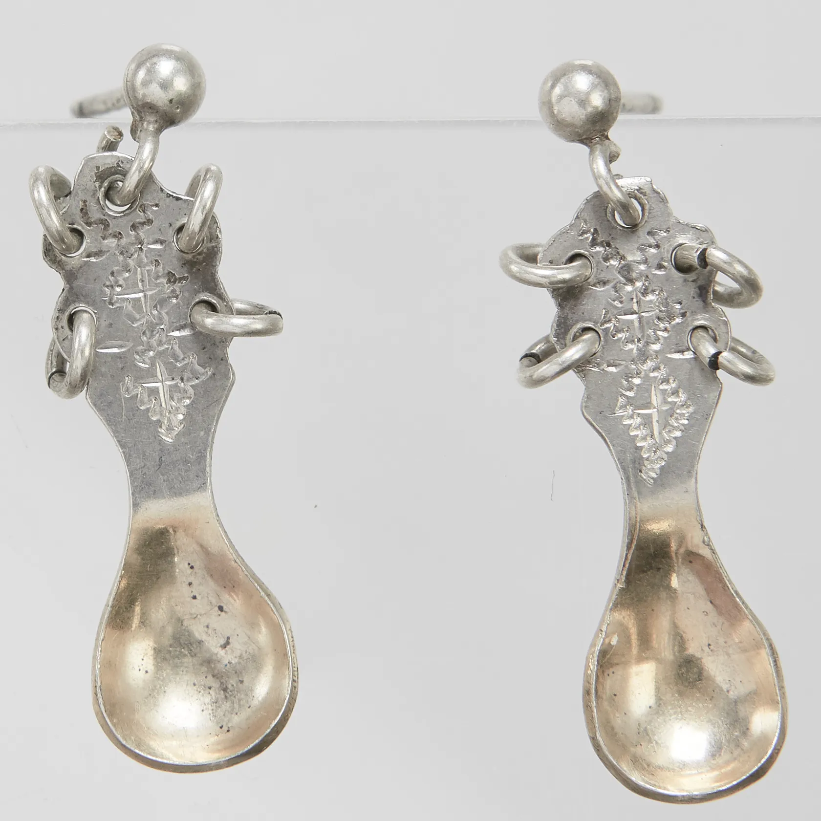 Ett par örhängen, längd ca 28mm, bredd 8mm, svenska stämplar, plast snurrebussar, 830/1000 silver Vikt: 2,5 g.
