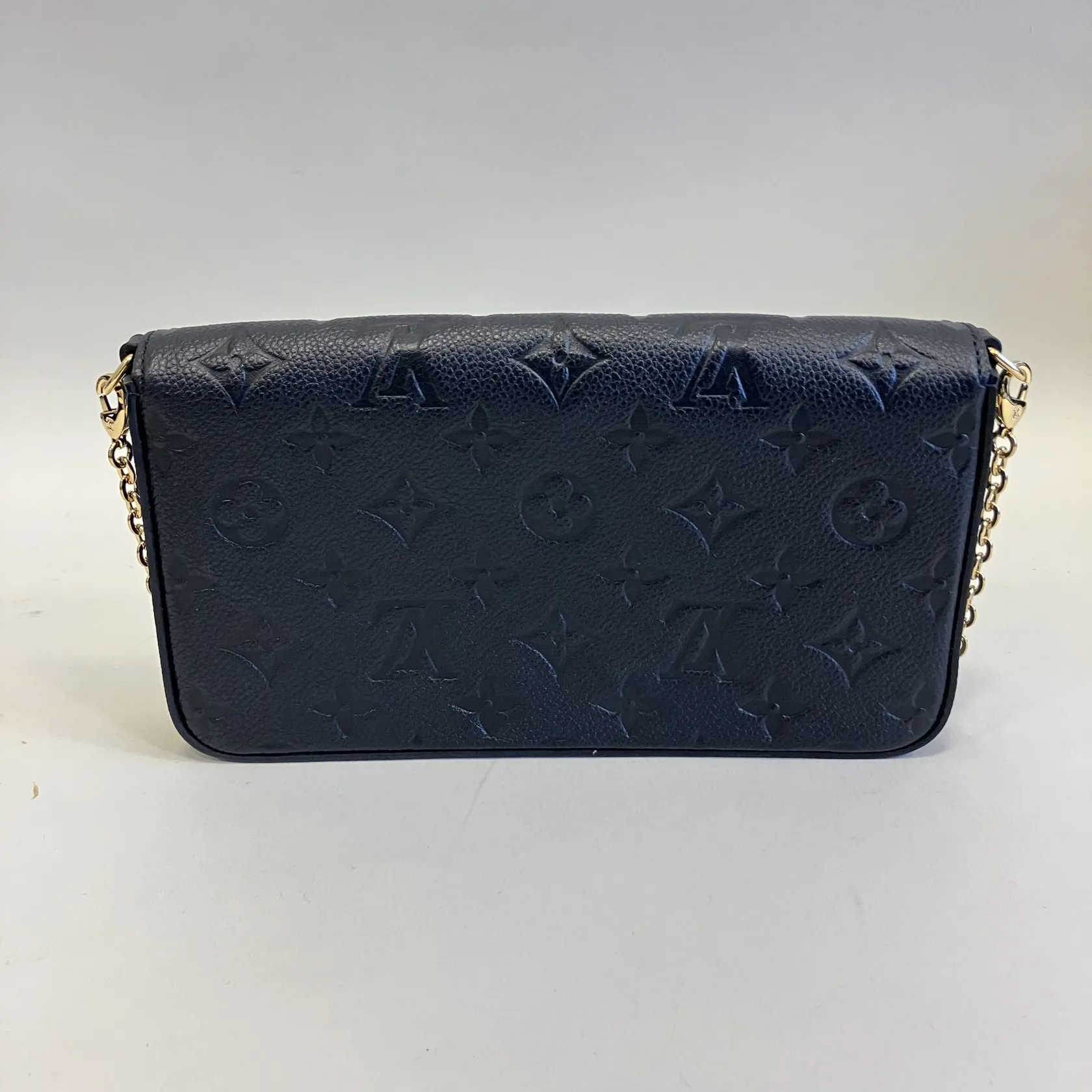 Väska Louis Vuitton Pochette Félicie, svart monogram Empreinte läder, modellnummer M64064, chip, ca 21x12x3cm, avtagbar axelkedja i gulmetall, tillhörande korthållare och clutch saknas, dustbag, kvittokopia -2022.