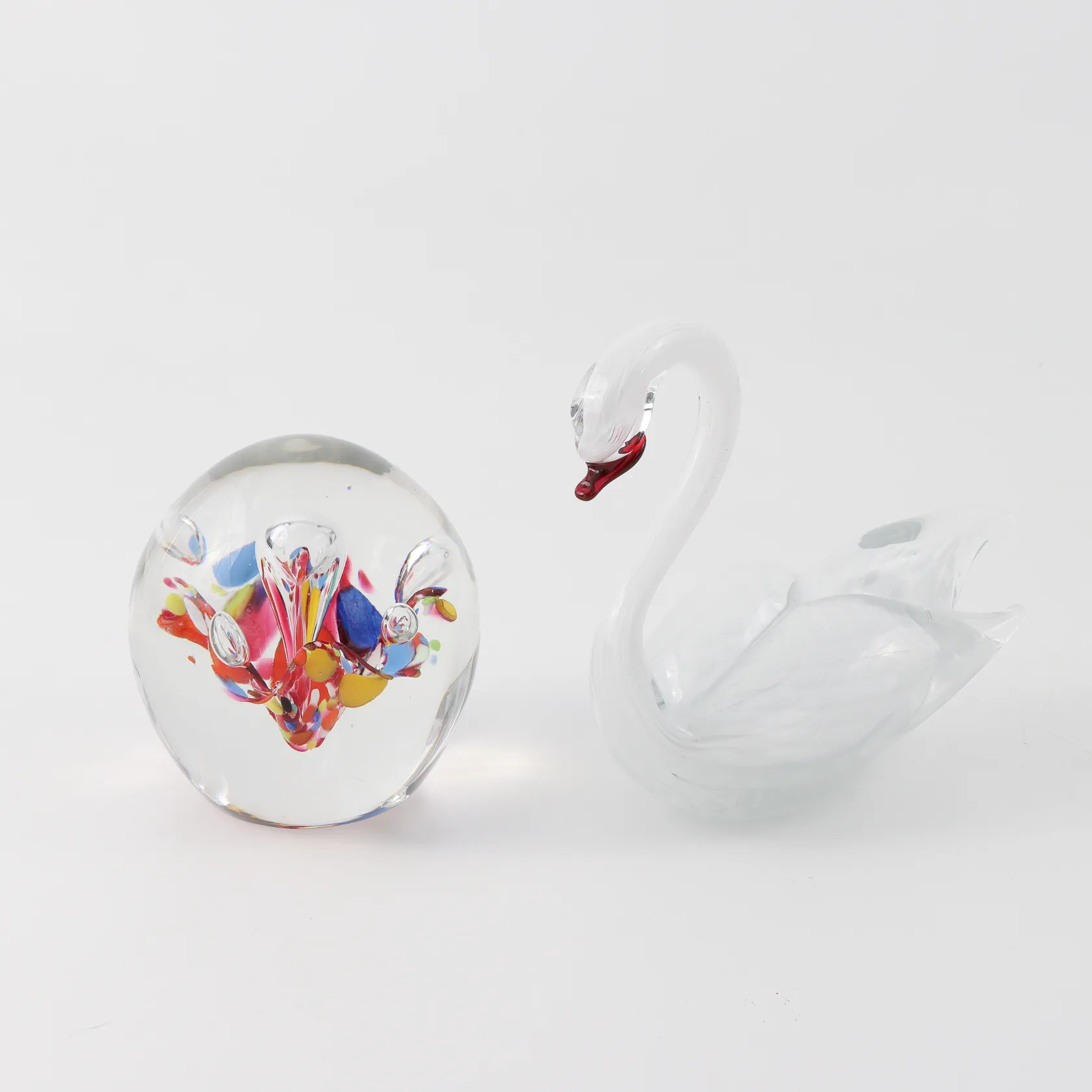Brevpress konstglas höjd ca 10 cm + svan konstglas FM Ronneby, höjd ca 14 cm. Skickas med postpaket.