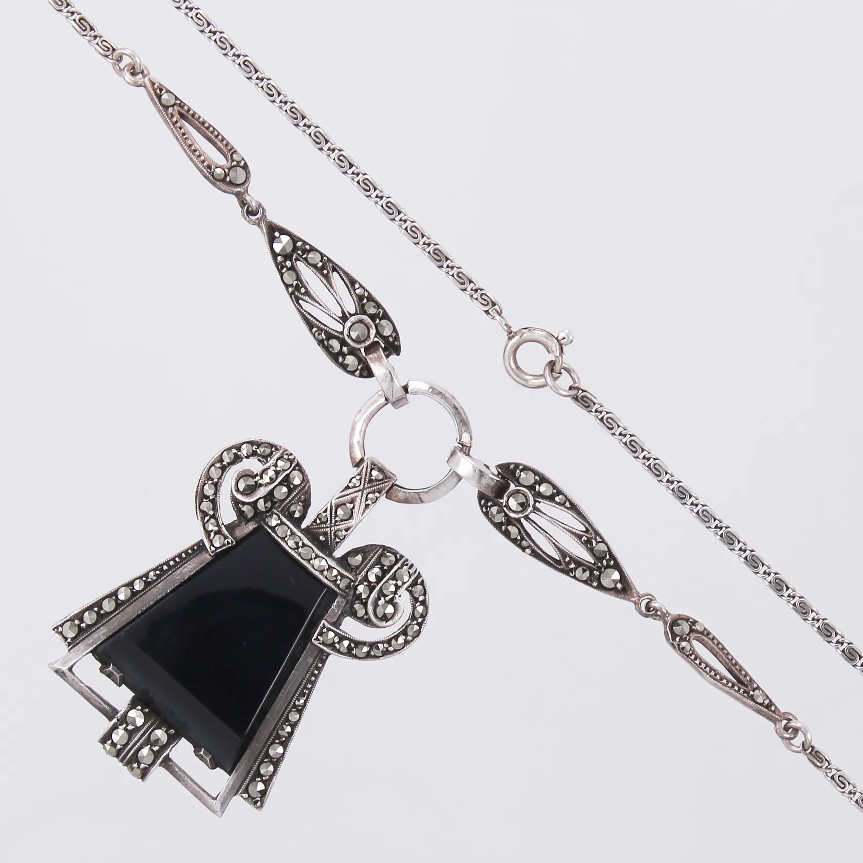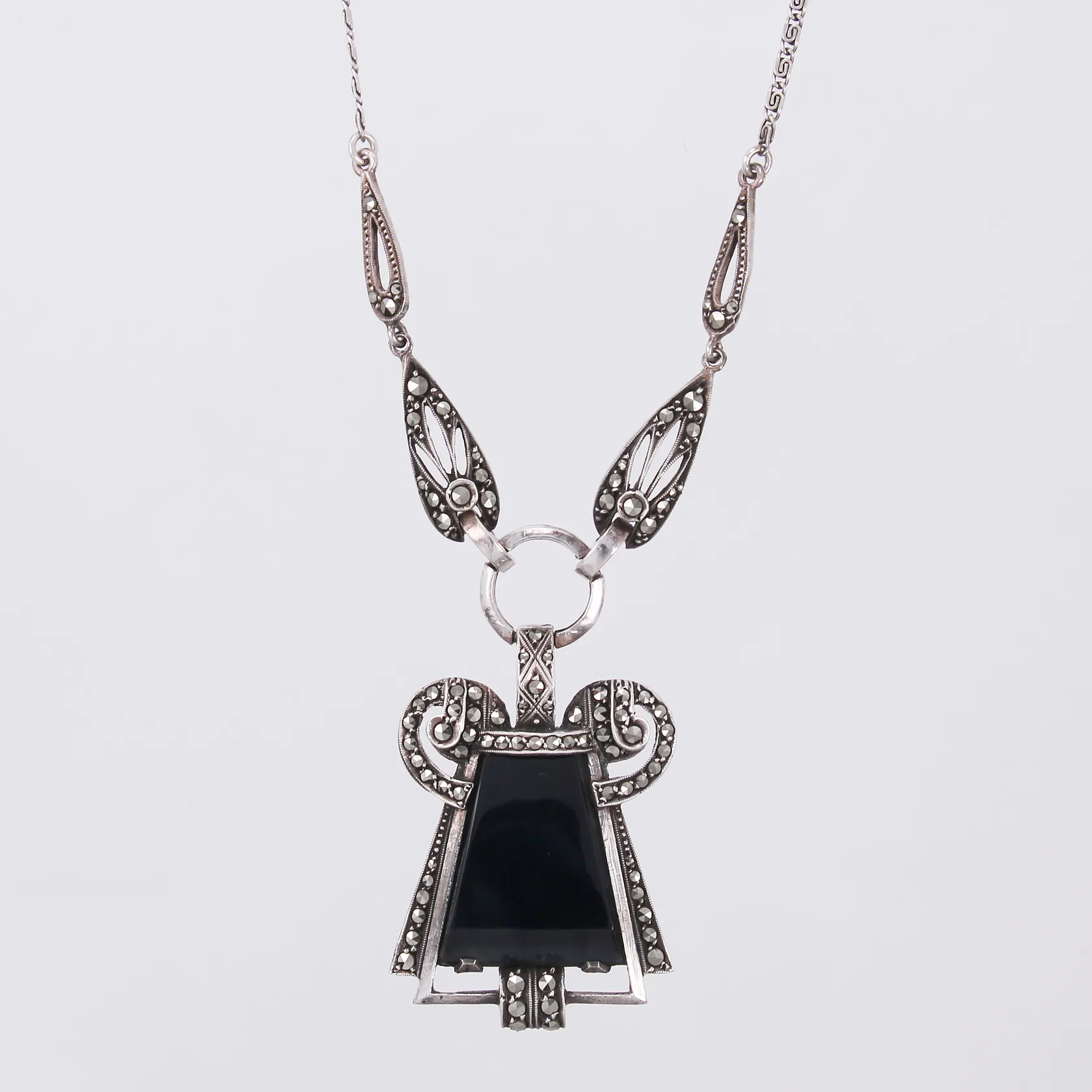 Collier med sten & markasiter längd ca 40,5cm, hängets längd ca 48mm, bredd ca 26mm, 835/1000 silver