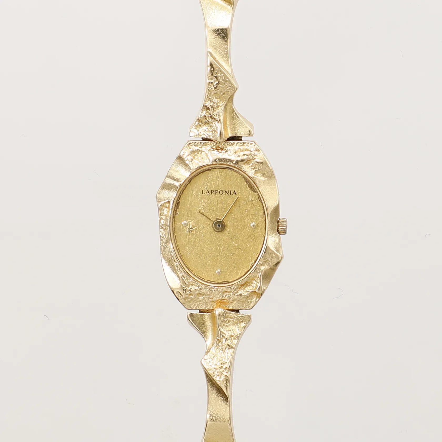 Armbandsur Pola Negri Lapponia Björn Weckström, serienummer, 228005, längd 19cm, urtavla ca 16 x 13mm, Finland år 1988, defekt, skadad urtavla, 18K Vikt: 33,4 g.