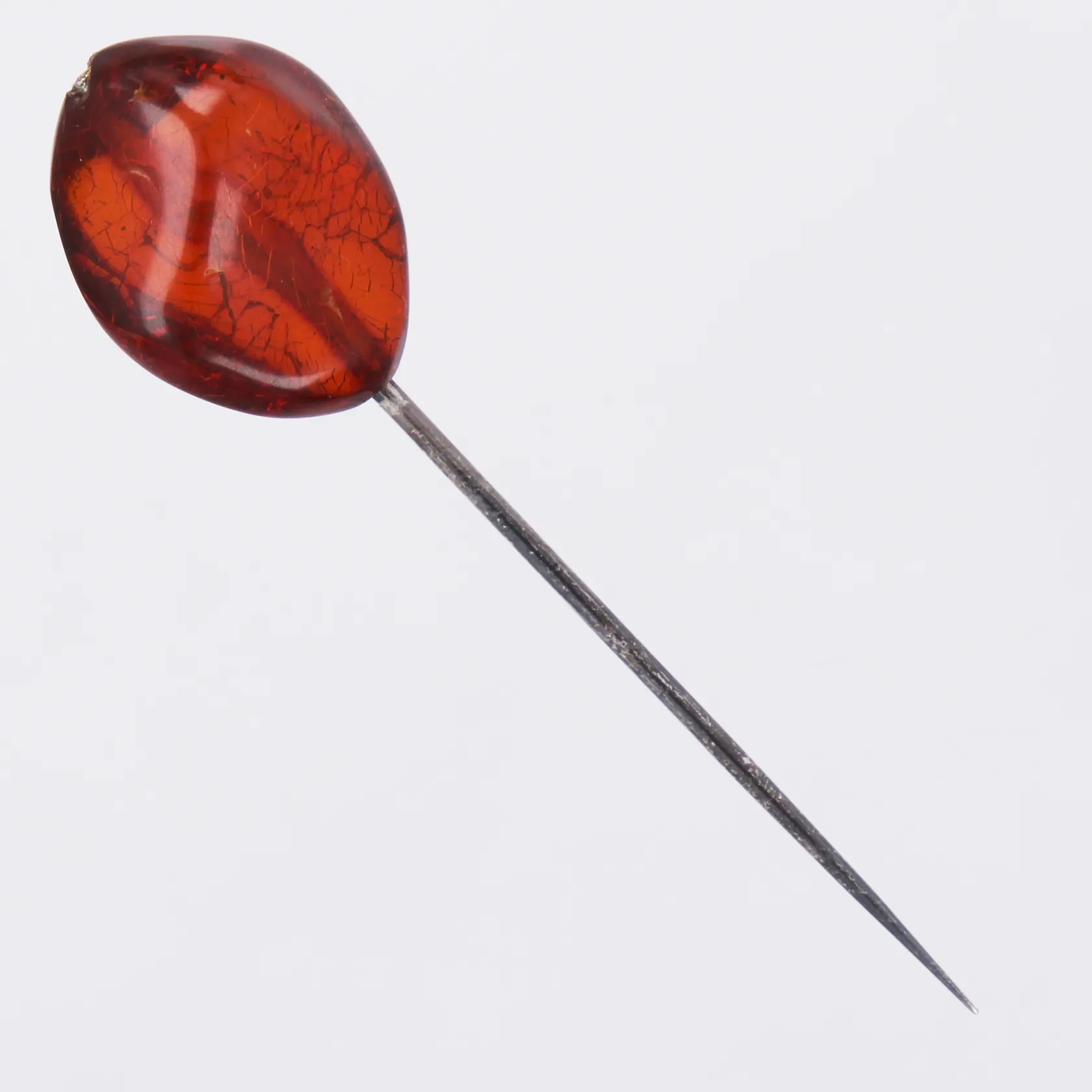 Nål med bärnsten längd: ca 7,2cm bredd: ca 1-18mm 830/1000, silver Vikt: 4 g.