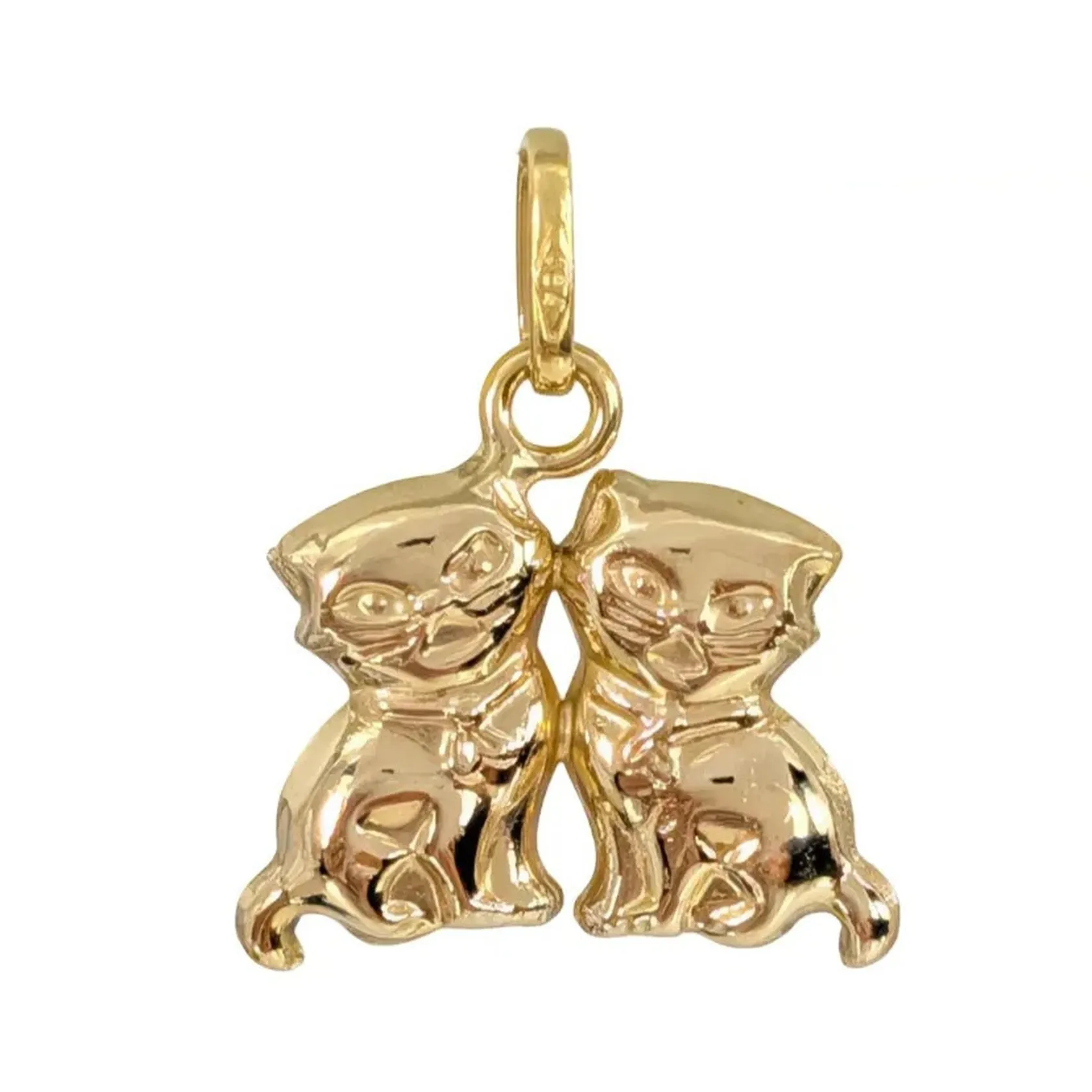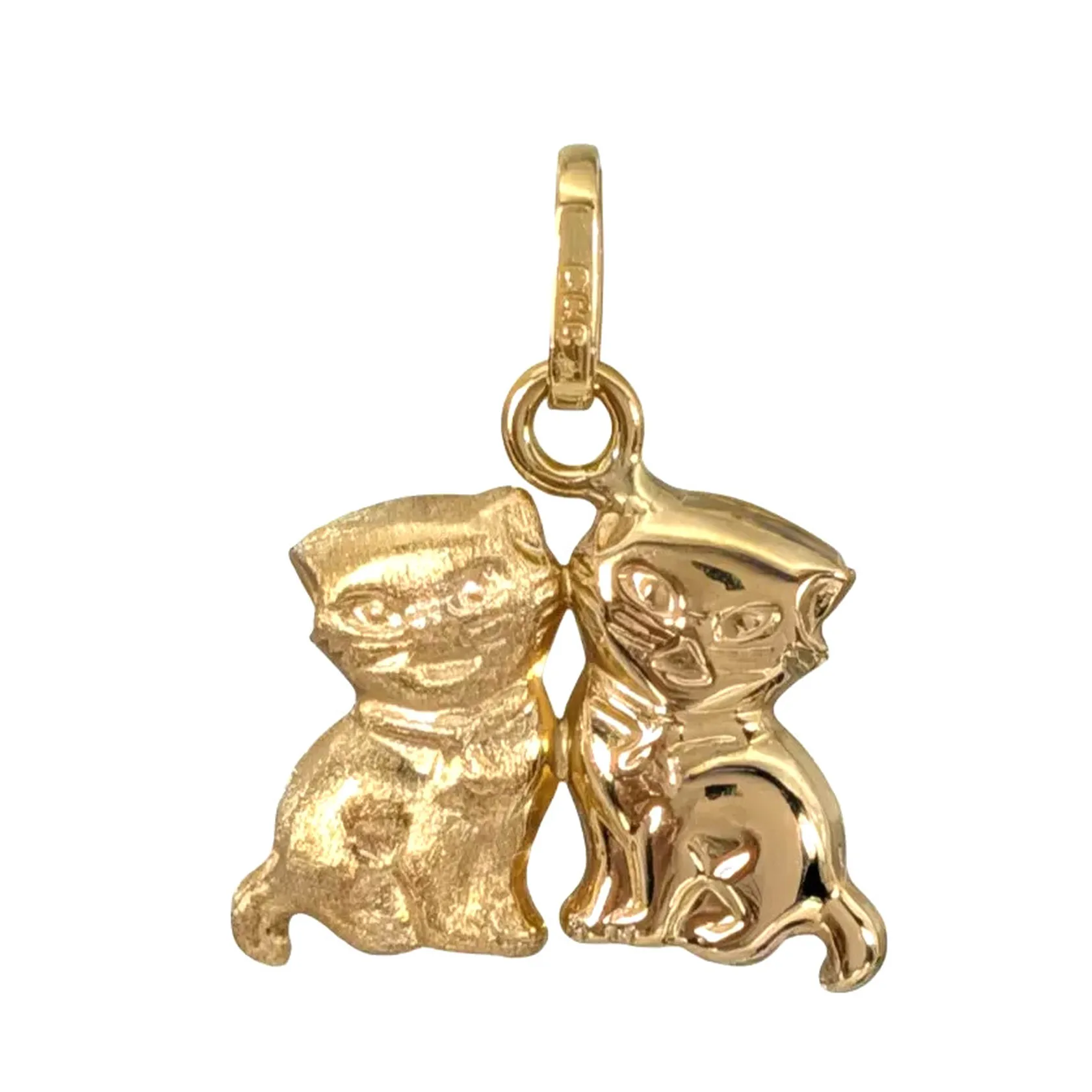 Hänge Katter, 18K guld, delvis matterad, vändbar modell, tillverkarstämpel CCC, längd inkl. ögla 18 mm, bredd 14 mm, tjocklek 3 mm, fint skick Vikt: 0,8 g.