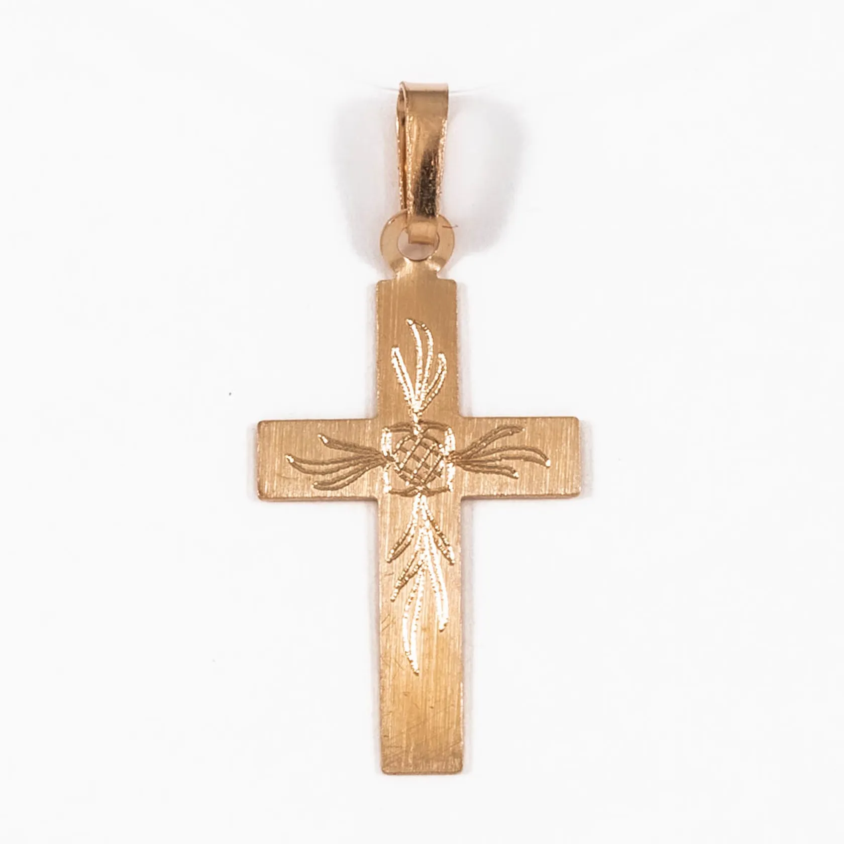 Hänge kors med mönstergravyr bredd 12mm, längd 26mm 18K 0,5g. Vikt: 0,5 g.