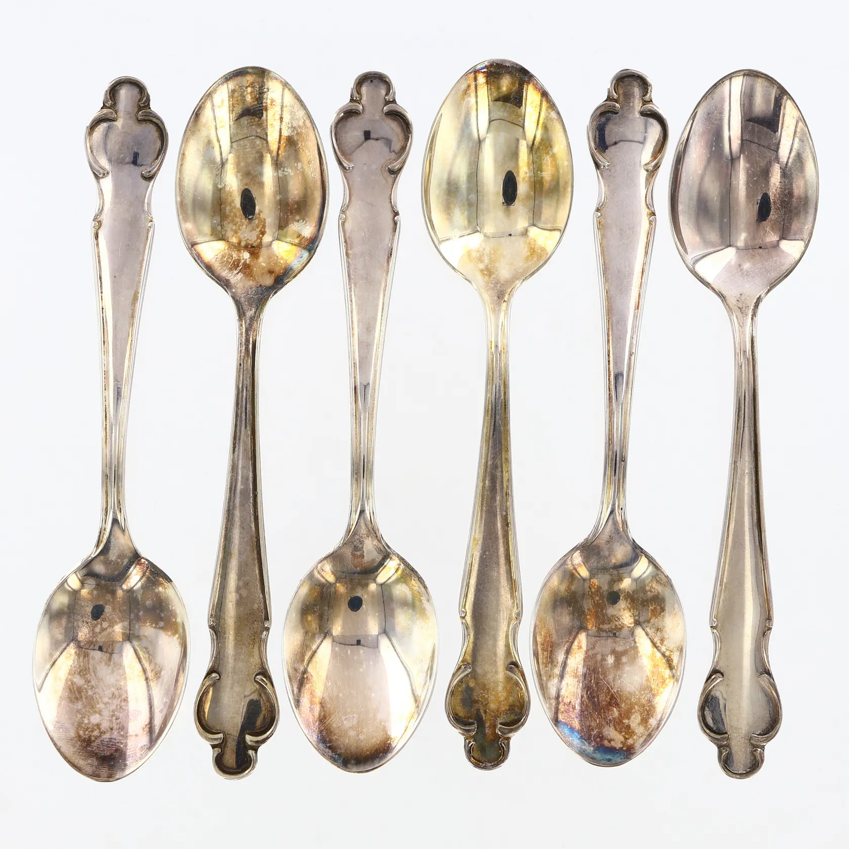 Sex kaffeskedar modell Disa, 12cm, silver 830/1000 Vikt: 81 g.